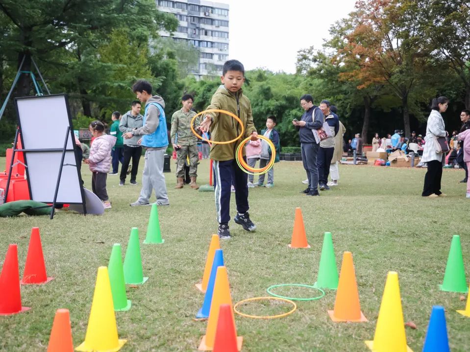 “公园+体育”,运动不停歇,区林长办联合上师大在康健园大草坪开展“童心系国防·绿彩伴童梦”趣味体育运动会,本次活动以“童心系国防”为主线,共分为“匠心筑防线”“火力打击”“冲锋陷阵”“狙击精英”“战略集结”“逆风翻盘”“投‘笔’从戎”“箭影行军”“圈定国防梦”九个项目。小朋友们热情高涨,踊跃参加着各项游戏,大家在欢声笑语中了解国防知识、学习体育精神、享受体育乐趣。