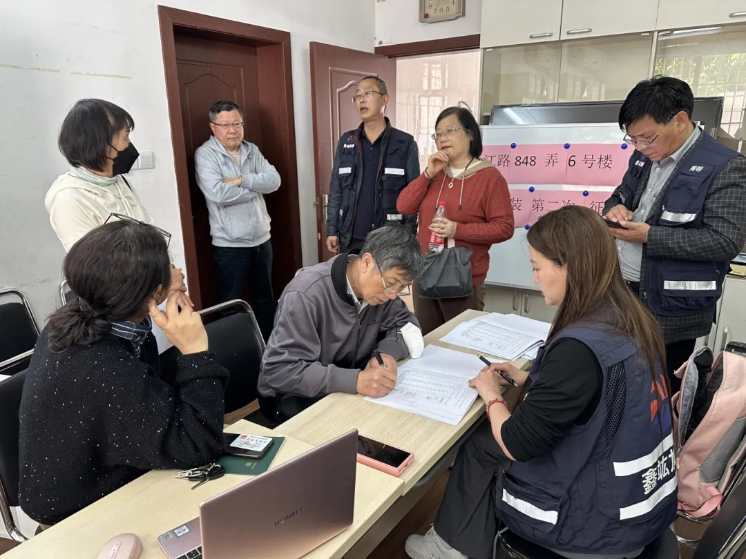 接到居民们的加梯请求后,长一居委积极搭建平台,协助成立楼道“三人小组”,多次召开组织业委会、居民代表会、加梯说明会、推进会。从楼组征询到全体业主大征询、到一次签约、二次签约,不管是夜晚还是周末,居委会和业委会的工作人员总是不厌其烦地为居民们答疑解惑、调解矛盾。