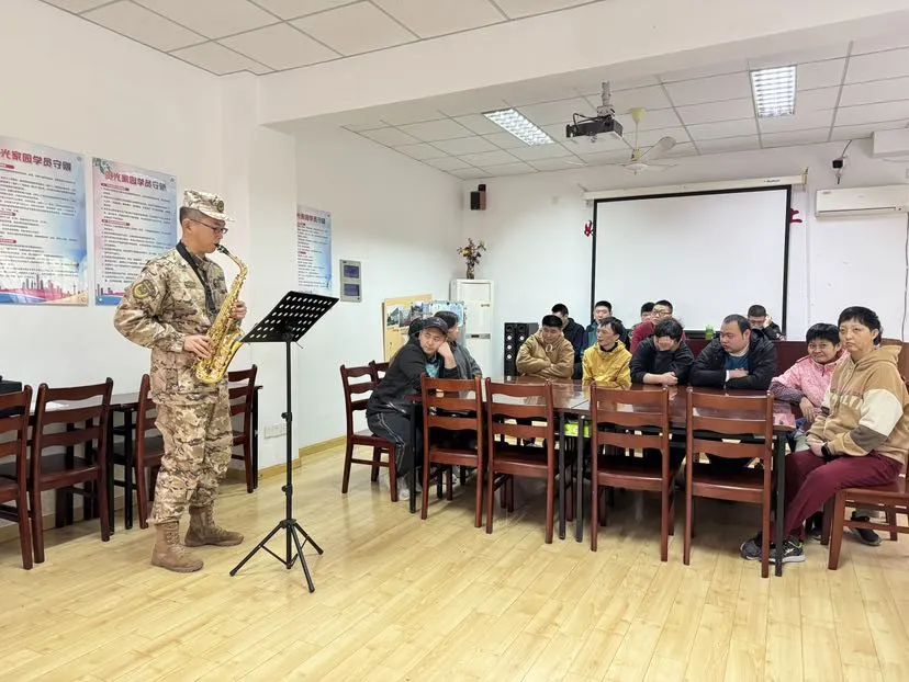 随后的才艺切磋,让阳光家园的学员们一下子兴奋起来。武警官兵们分别带来了萨克斯演奏和吉他弹唱,学员们也不甘示弱,向官兵们展示了葫芦丝以及快板节目。在一阵阵热烈的掌声中,这一刻更彰显了军民鱼水情的深厚情谊。学员们由衷感谢武警官兵的此次到来,并表示武警官兵们不仅是保卫国家的英雄,更是他们身边的贴心人。
