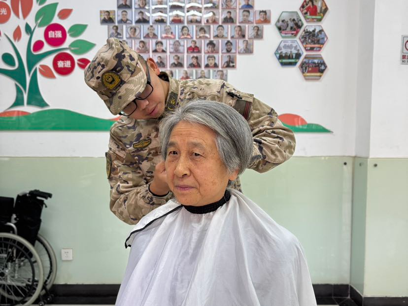 当天上午九点,武警官兵们身着整齐的军装准时来到活动现场,官兵首先为学员们修剪了头发,经过一番捯饬,很快就让学员们一个个面貌焕然一新。