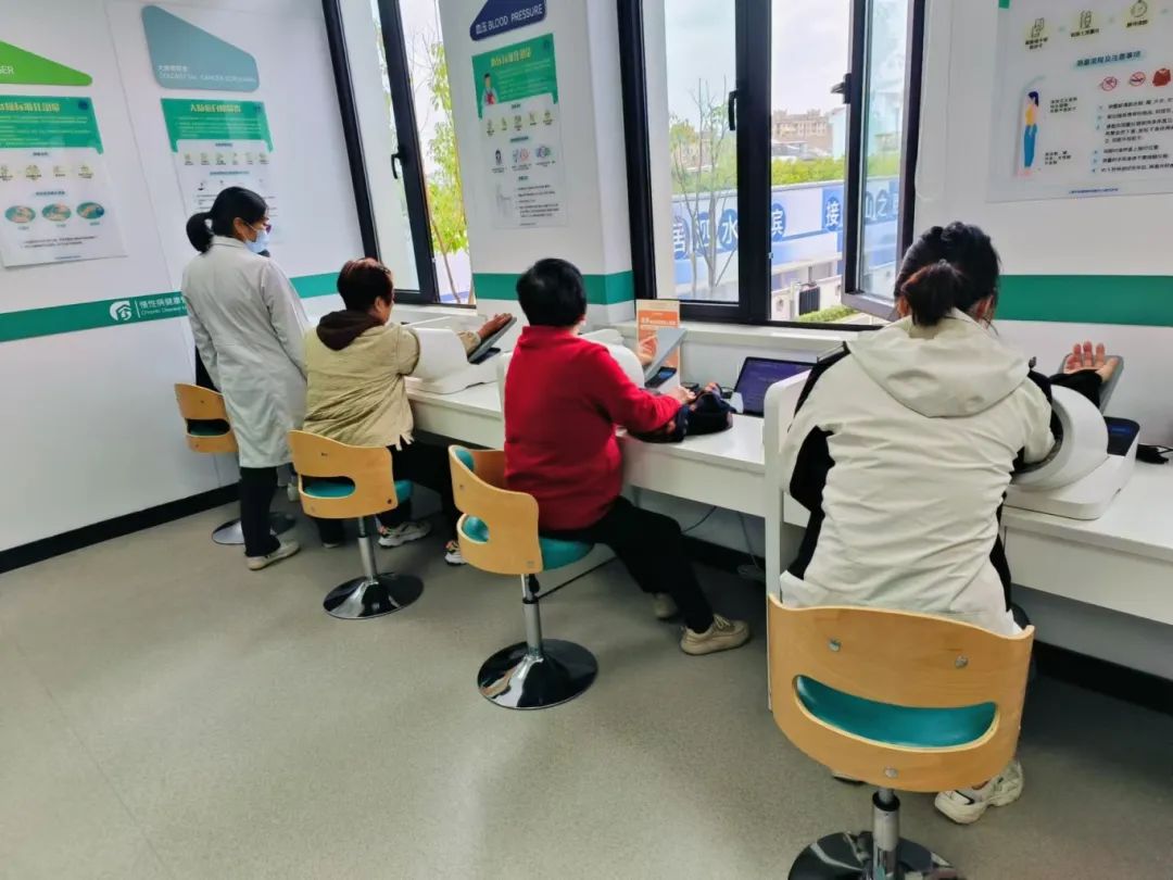 慢性病健康管理支持中心配有电子血压计、智能血糖仪、电子身高体重测量仪、肺功能检测仪、智能语音随访亭等设施设备,能为居民提供身高、体重、腰围、臀围、血压、血糖等健康指标标准化采集与监测服务。