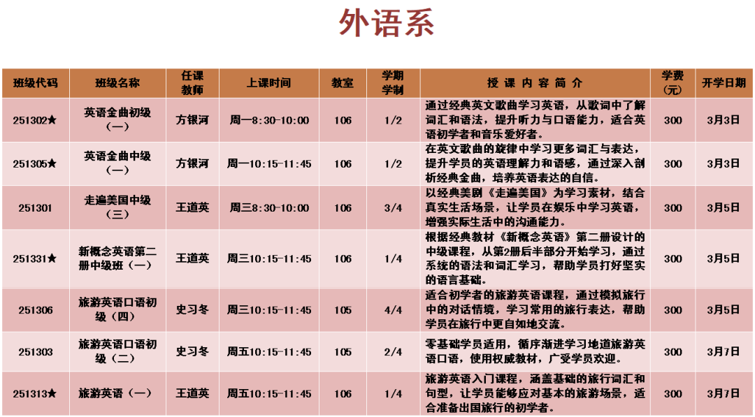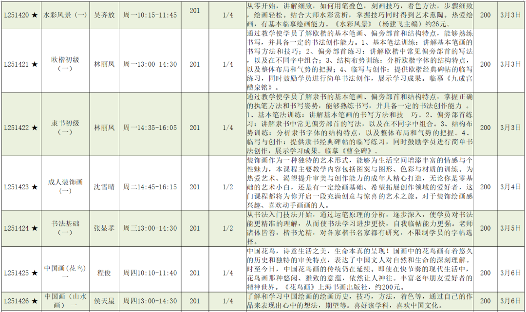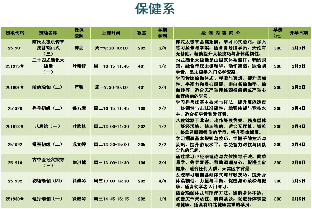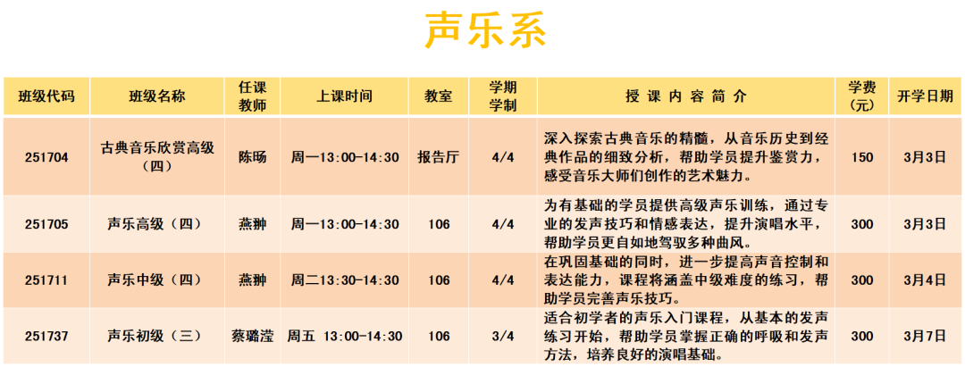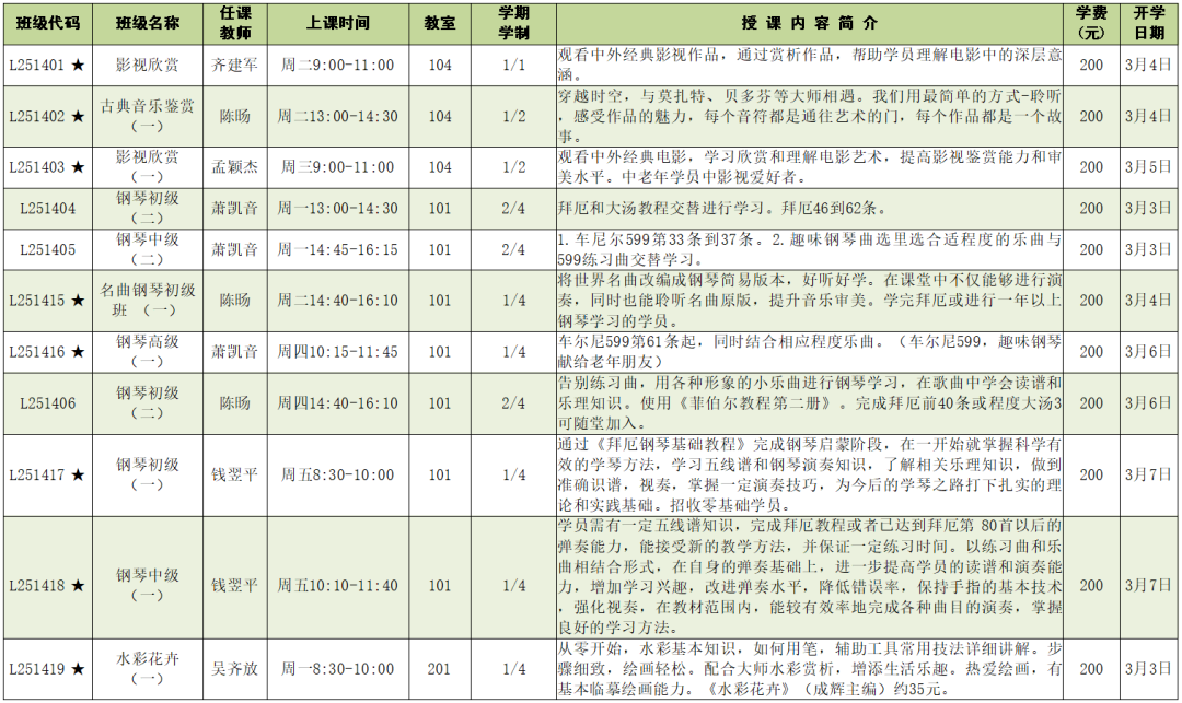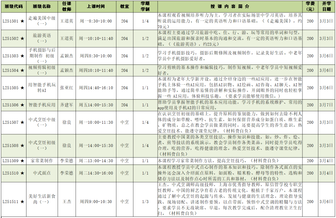 上课时间:2025年3月3日至6月6日共14周,遇国定节假日顺延。