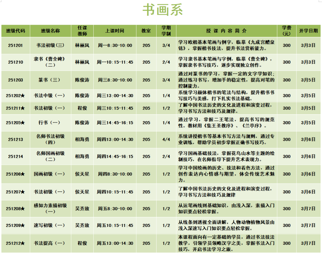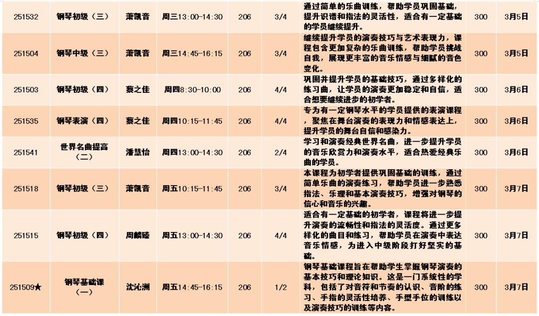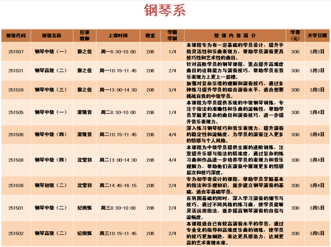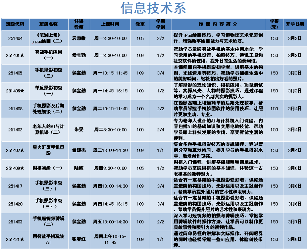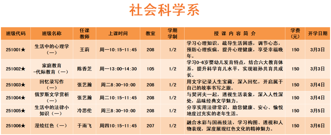 上课时间:2025年3月3日至6月6日共14周,遇国定节假日顺延。