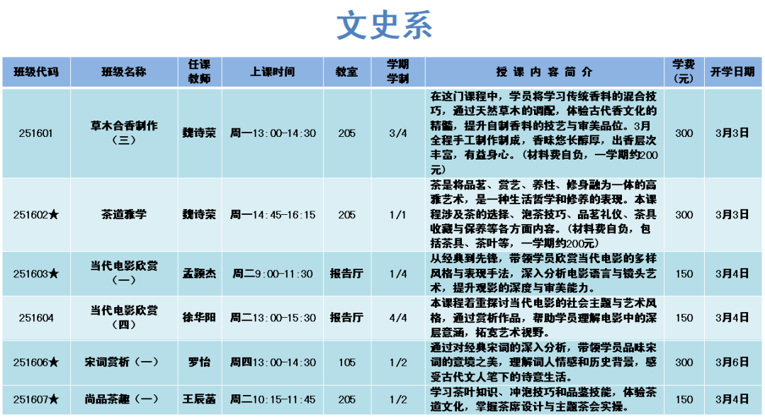 上课时间:2025年3月3日至6月20日共16周,遇国定节假日顺延。