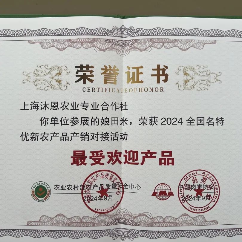 遍地金黄,十里稻香。上海沐恩农业专业合作社种植的水稻喜获丰收,首批美谷2号已收割300亩左右,注册商标“娘田米”。新大米投放奉贤、浦东、杨浦、静安、闵行、宝山等地市场后,很快销售一空。“娘田米”颗粒饱满,晶莹剔透,煮出来的米饭软糯适口,清香扑鼻。