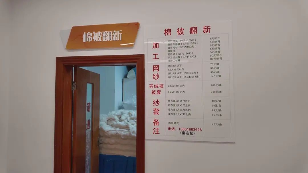 除了翻新棉花被外,童师傅的小店还提供换被套、充绒、修正填充物不均等各种被子相关的服务。甚至还可以将闲置的毛衫做成被子,只收取加工费。童师傅表示,他最大的心愿就是能够收几个徒弟,一起将这门手艺传承下去。