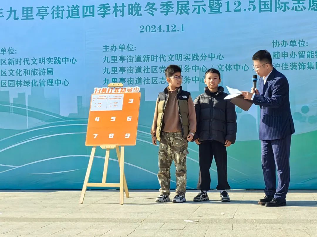 文化盛宴滋养心灵,志愿服务温暖人心。12月1日上午,“人民城市,文明风采——2024年九里亭街道四季村晚冬季展示暨12.5国际志愿者日”主题活动在九里亭公园举办。活动现场不仅有多姿多彩的文艺表演和互动问答,还有内容丰富的主题集市、特色农产品展销,引来众多市民“噶闹猛”。
