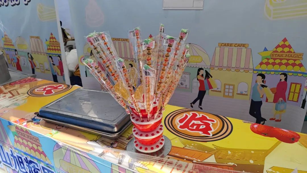 “我小时候在北方生活,每年冬天最想吃的零食就是冰糖葫芦,咬一口硬邦邦的还带着冰碴糖,到了嘴里就一点点慢慢融化,酸甜的味道在口腔里弥散开来,那叫一个满足,没想到在这里也能吃到这么地道的糖葫芦。”市民王女士一边吃一边高兴地说。