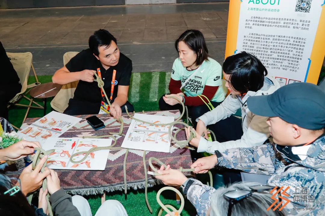 上海登山户外运动协会在展区安排专业户外教练,结合长三角区域的特点,针对户外专业知识进行了主题分享。同时通过场景营造,让参与者沉浸式学习专业、实用、有趣的户外知识。
