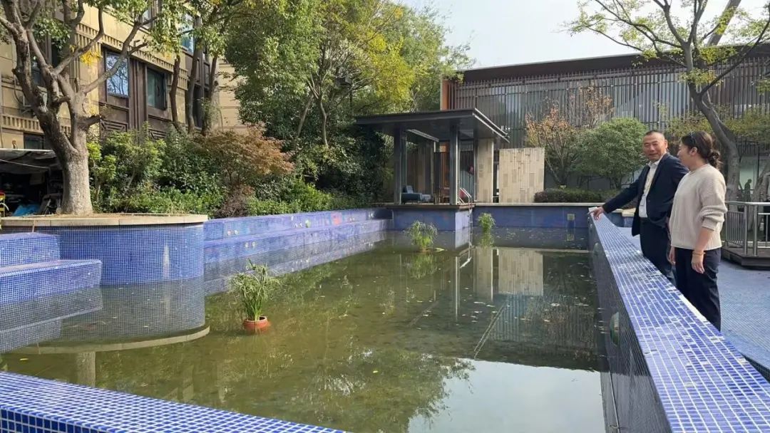 观赏鱼池原本是社区一期的废弃游泳池,山水华庭社区居委会、物业和业委会“三驾马车”齐行动,充分考虑居民的意见和需求,对游泳池进行了全面清理和消毒,并引入了多种色彩斑斓、形态各异的观赏鱼种。同时,为了提升观赏体验感,鱼池周边增设了绿化景观和休闲设施。改造完成后,众多居民前来观赏。许多家长还带着孩子来到鱼池边,一边欣赏鱼儿在水中自由游弋的美景,一边给孩子讲解有关鱼类和生态保护的知识,增进了亲子关系,也培养了孩子们的环保意识。