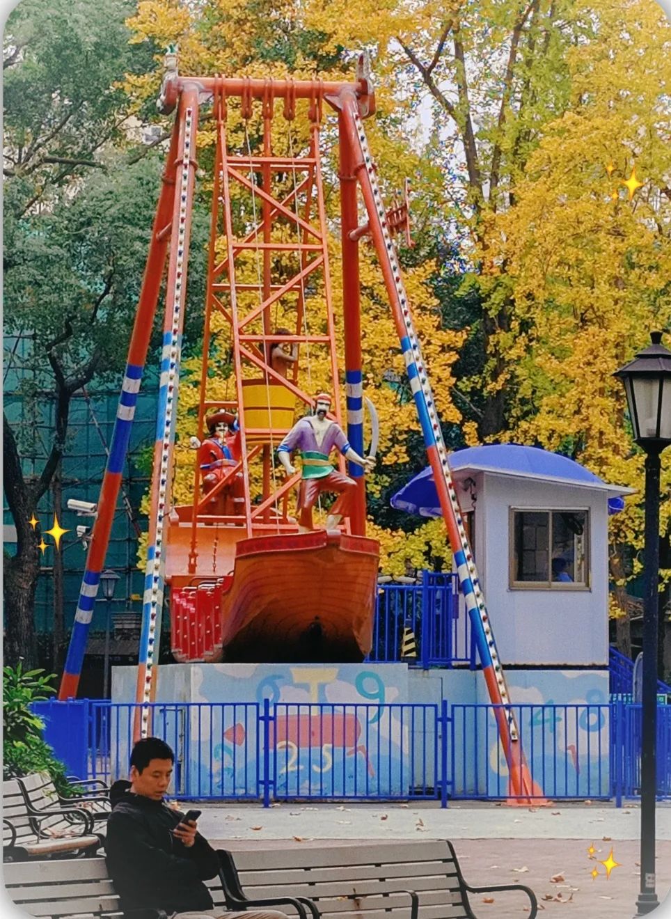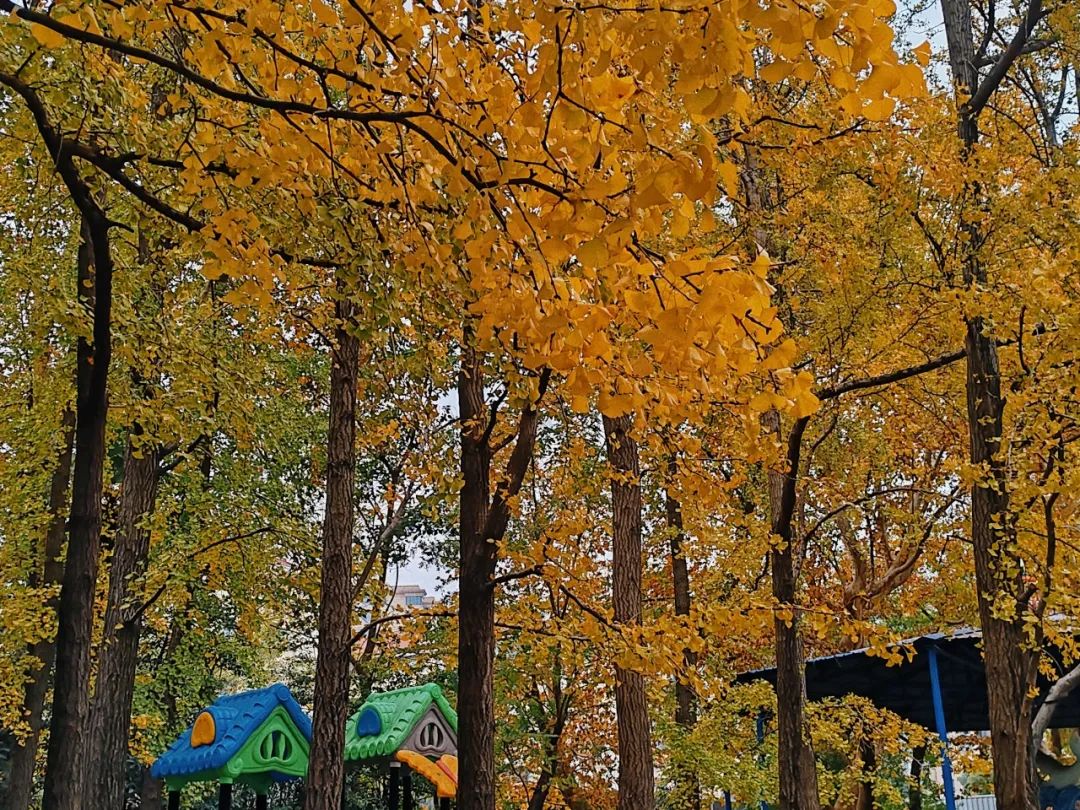 儿童游乐场以及公园后山附近那片金黄色的银杏林也是热门打卡点。银杏的黄配上海盗船的黄,给整个区域增加了梦幻色彩,让人仿佛走进了“童话世界”。几个孩子在银杏树下嬉戏,偶尔拾起几片落叶,或举过头顶,或将其洒落,玩得不亦乐乎。