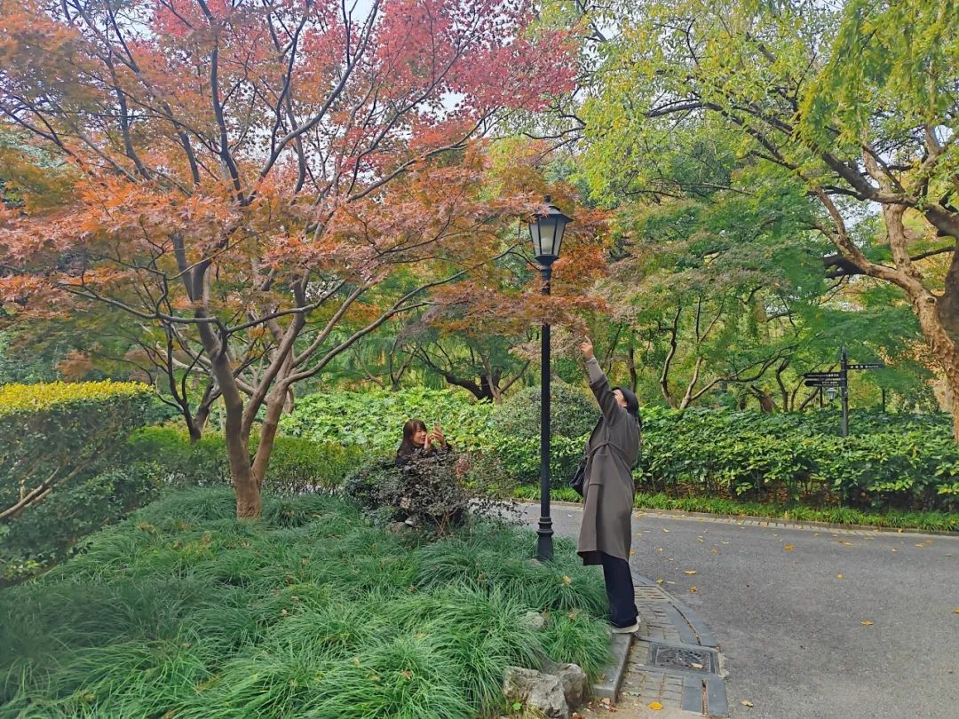 季节交替之时,整个中山公园,仿佛被染上了一层“美拉德”色彩,红的热烈、黄的明媚、绿的生机、棕的沉稳,它们相互交织,共同绘制出一幅冬日里最动人的风景画。