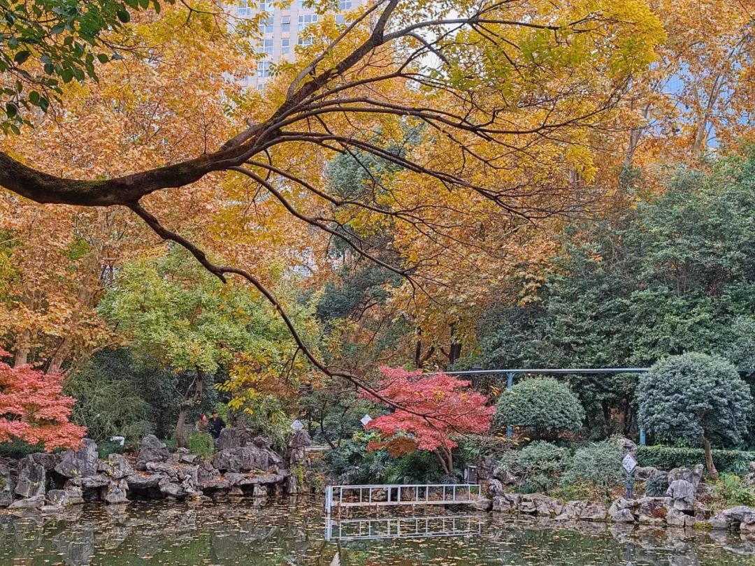 秋末冬初,时光流转到大雪节气。此时,漫步于百年中山公园,仿佛踏入了一幅流动的画卷,每一处风景都细腻地勾勒着冬日的温柔与绚烂。枫叶的红、银杏的黄,吸引了无数市民游客,前来捕捉季节限定美景。
