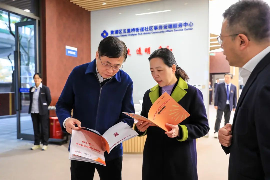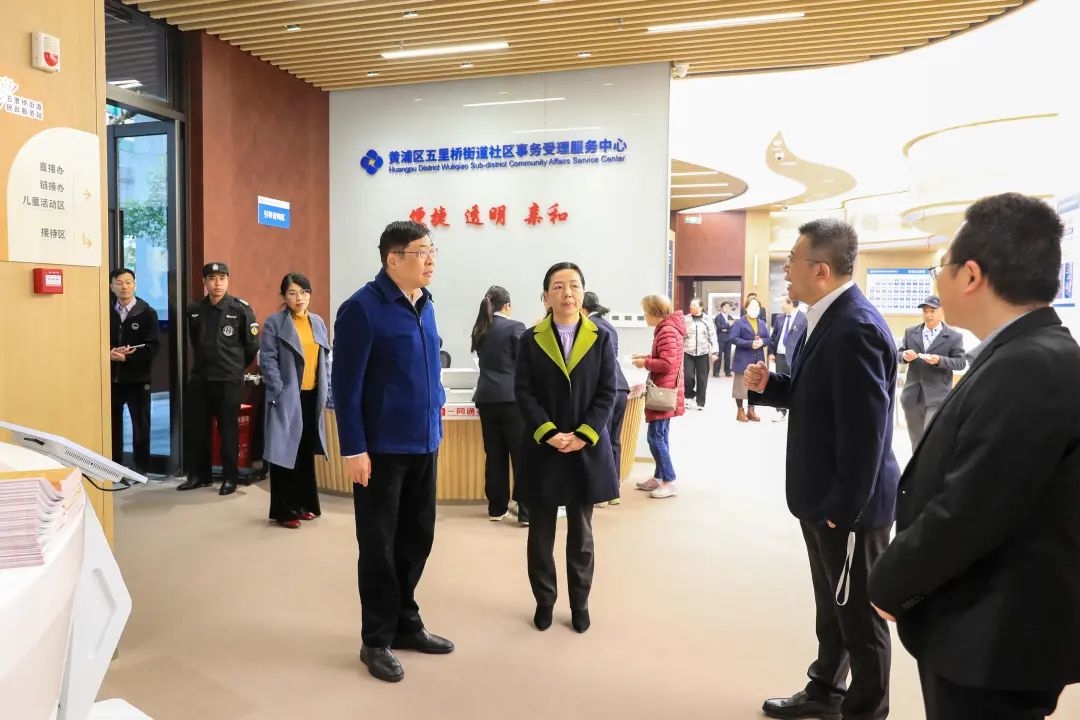 活动现场,市民政局党组书记、局长蒋蕊、黄浦区委书记杲云共同为民政服务站揭牌。