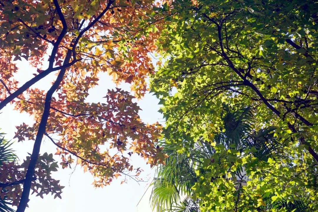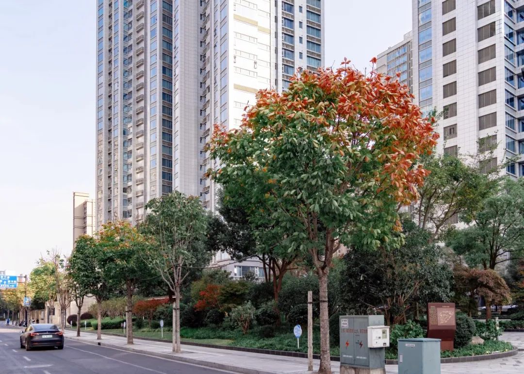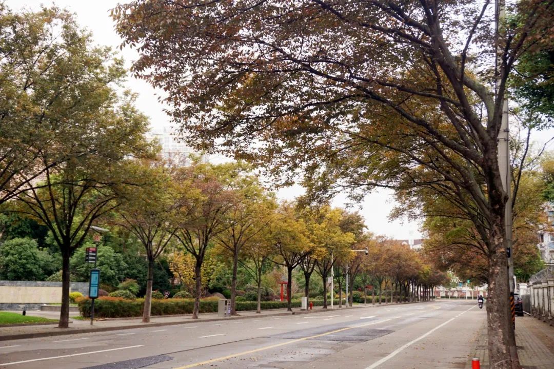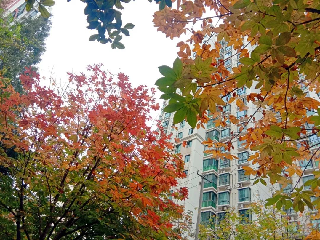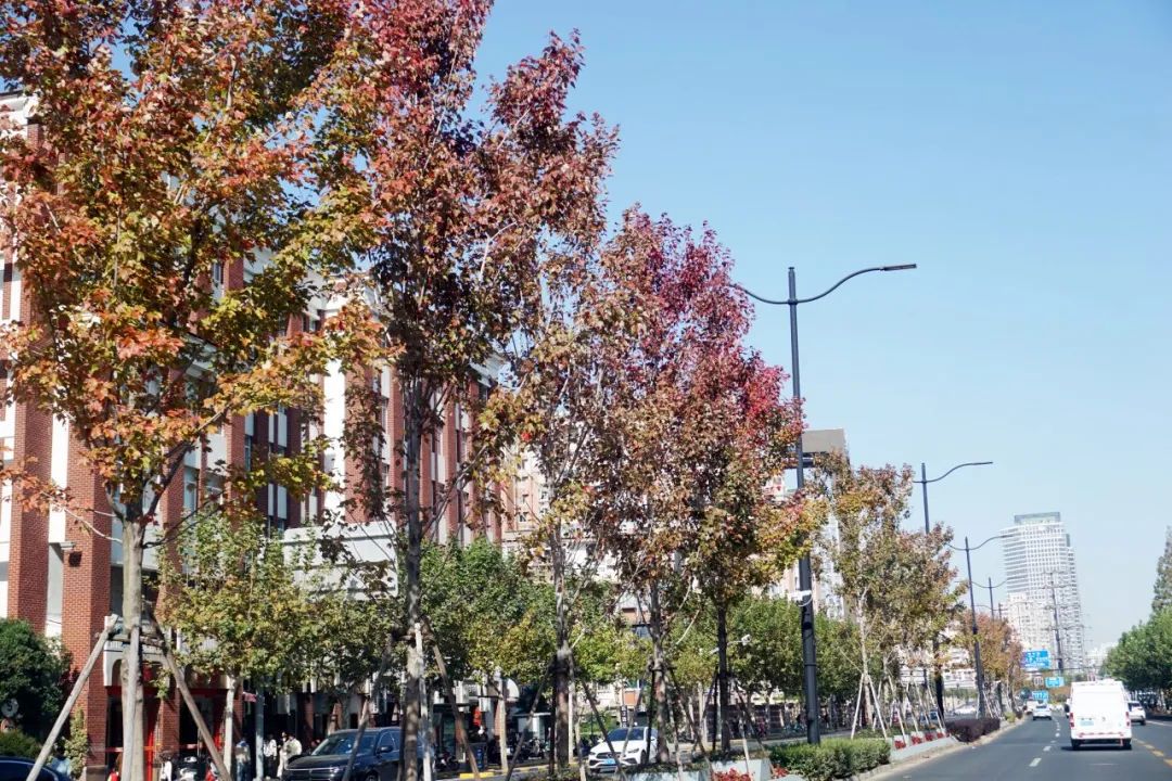 气温渐冷,大自然的调色盘却依旧丰富多彩,在这个美丽的季节里,落叶如同信使,捎来了大自然的问候。很多植物叶片将能量转移到树干、树根的同时,逐渐放弃绿色的基底,变了颜色,最终落入尘土,以抵御即将到来的严寒。随着持续贯彻落实市绿容局关于“四化”新优品种推广应用,普陀多条街头小巷种植的色叶树,呈现出美拉德色系的浓郁色彩。