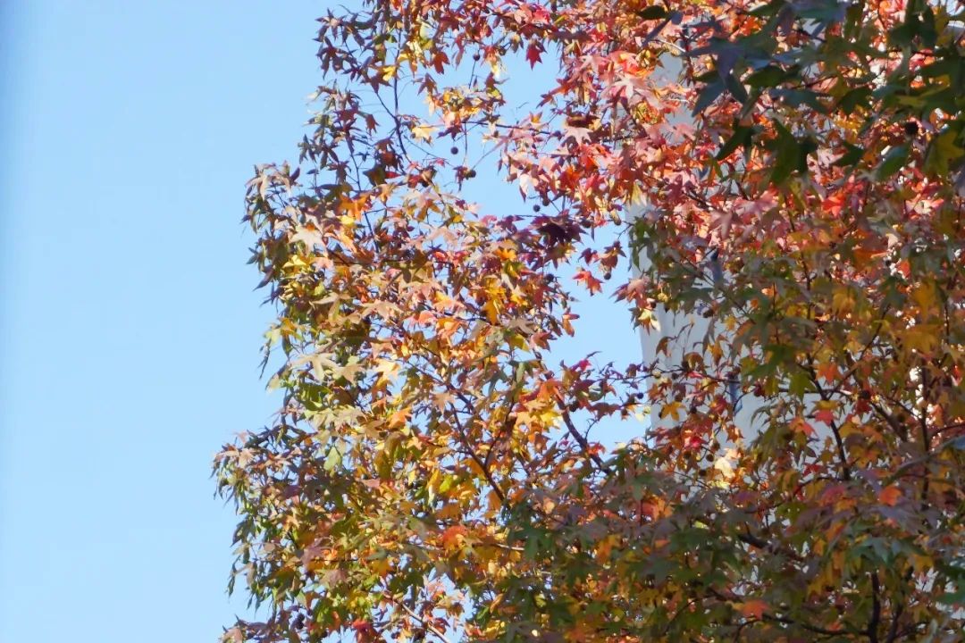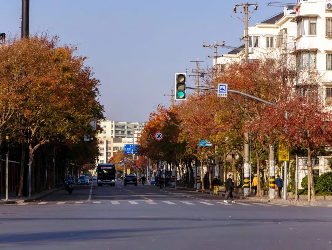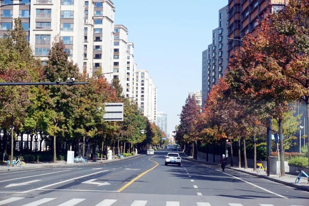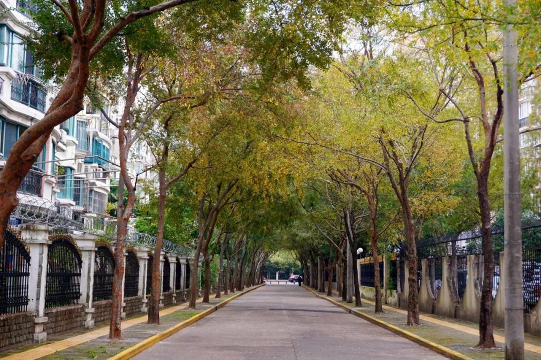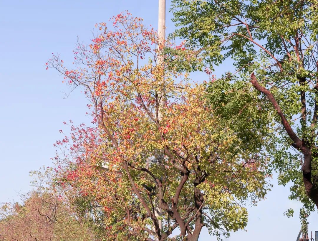 气温渐冷,大自然的调色盘却依旧丰富多彩,在这个美丽的季节里,落叶如同信使,捎来了大自然的问候。很多植物叶片将能量转移到树干、树根的同时,逐渐放弃绿色的基底,变了颜色,最终落入尘土,以抵御即将到来的严寒。随着持续贯彻落实市绿容局关于“四化”新优品种推广应用,普陀多条街头小巷种植的色叶树,呈现出美拉德色系的浓郁色彩。