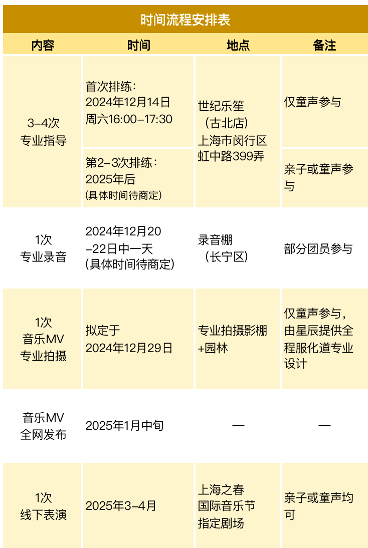 星辰童声团将于2025年1月全网发布音乐MV《龙文》,这支MV将融合传统园林和现代影棚拍摄场景,让演唱者的歌声与画面共同呈现出中国文化之美。成功入选星辰童声团“形象大使”的小朋友将有机会和团队共同参与作品的录制,成为MV中的主角,为音乐之旅留下一段难忘的回忆。