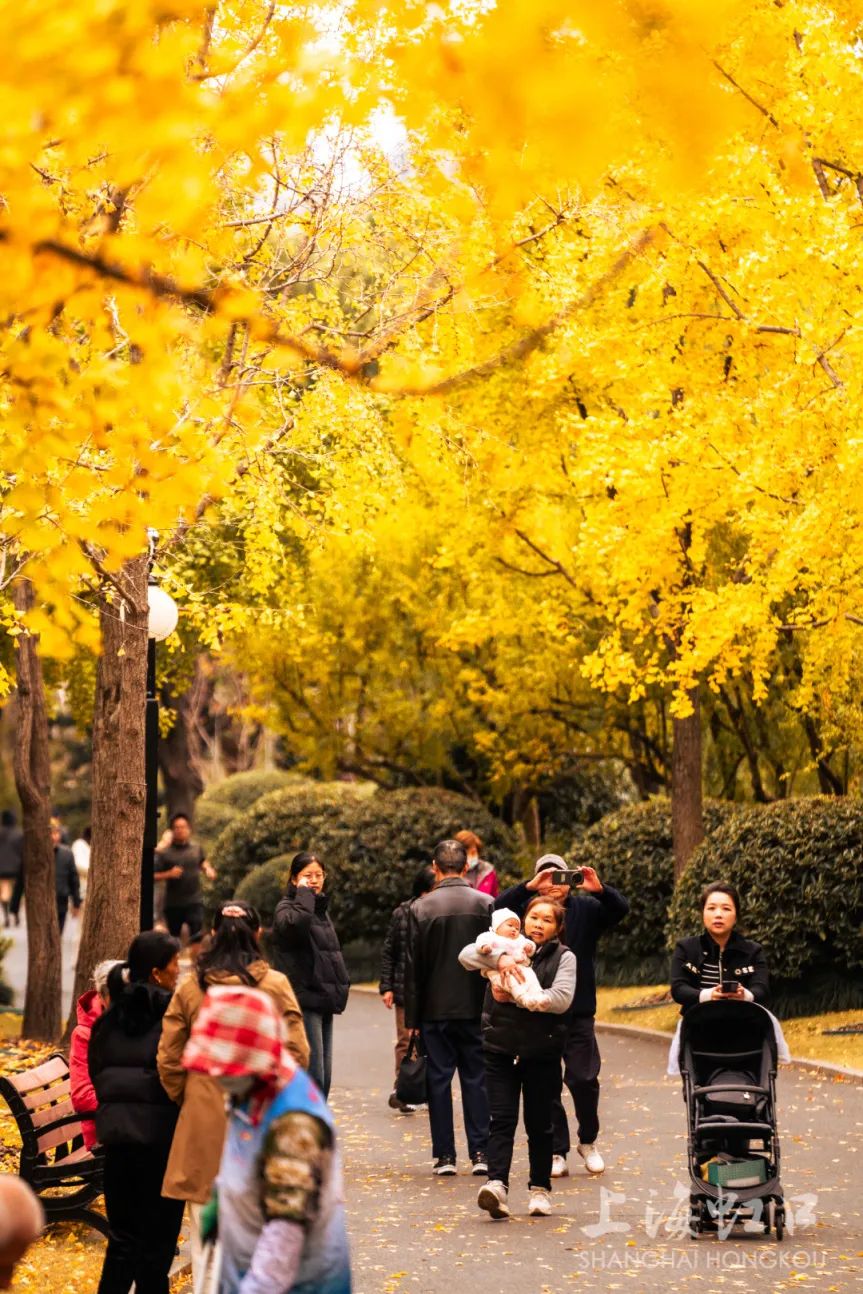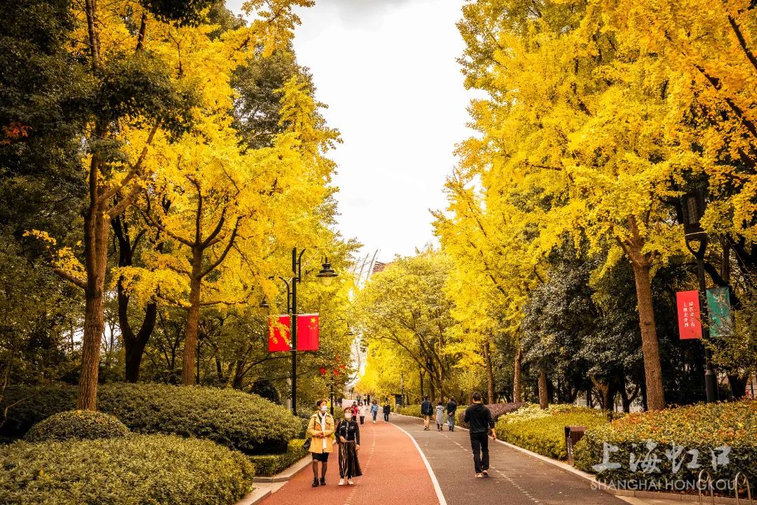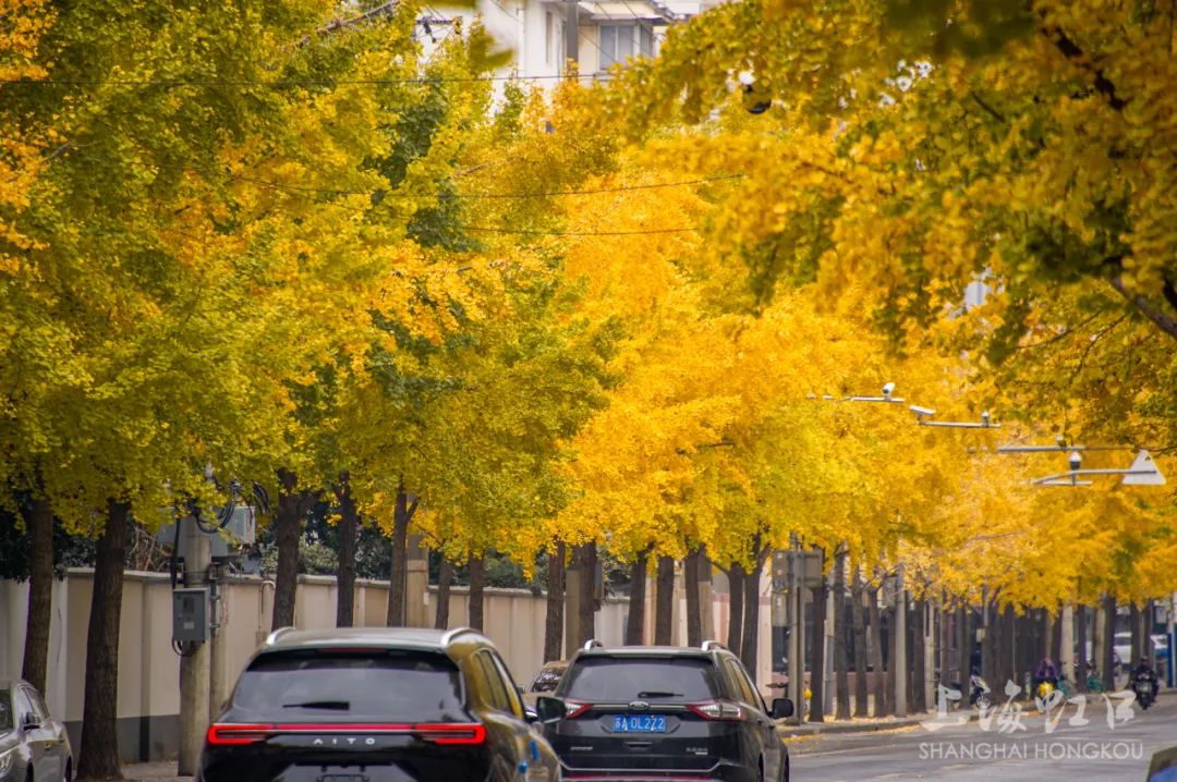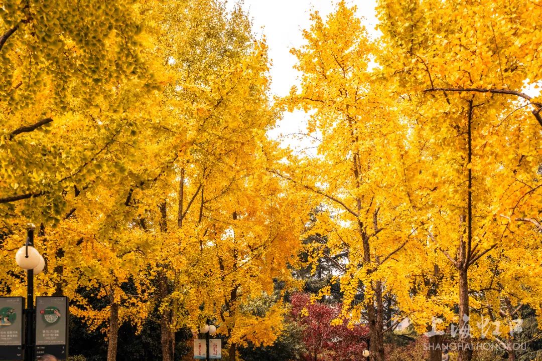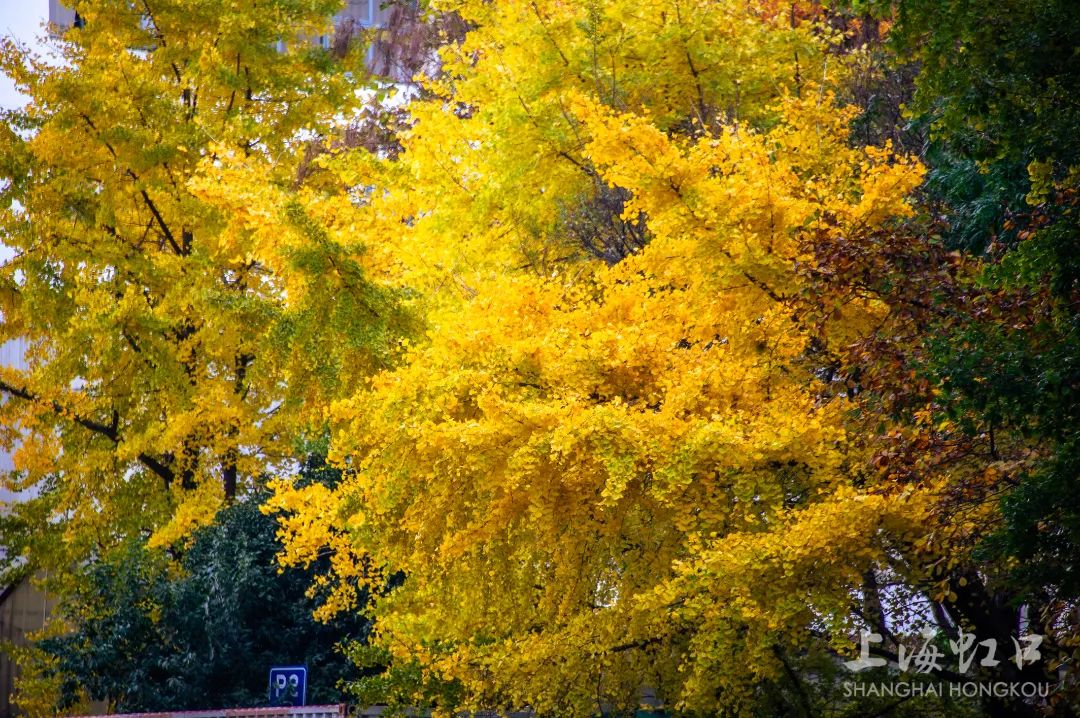 一夜寒霜降,满城银杏黄,随着气温持续走低,虹口区的银杏树悄然换上了金装。