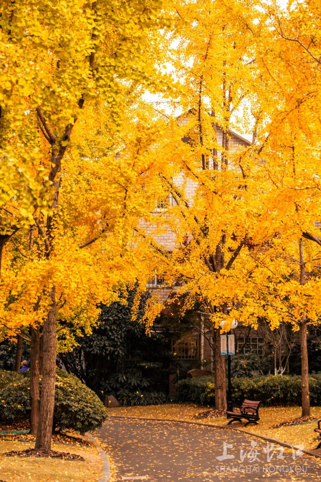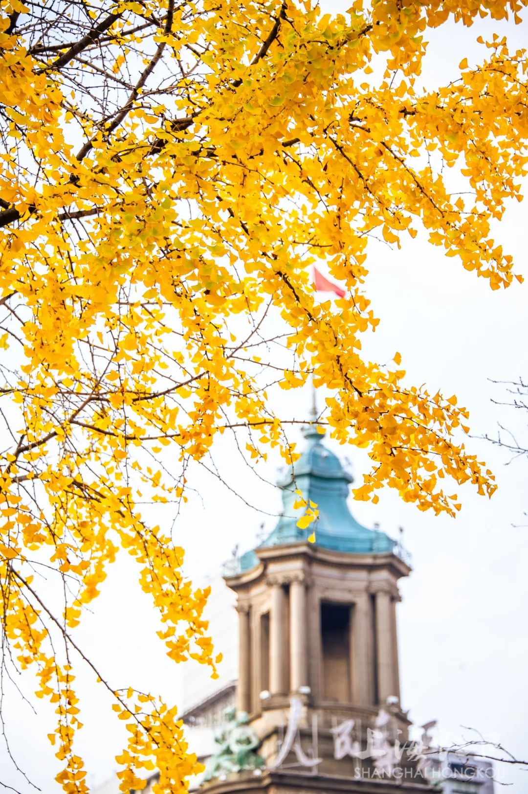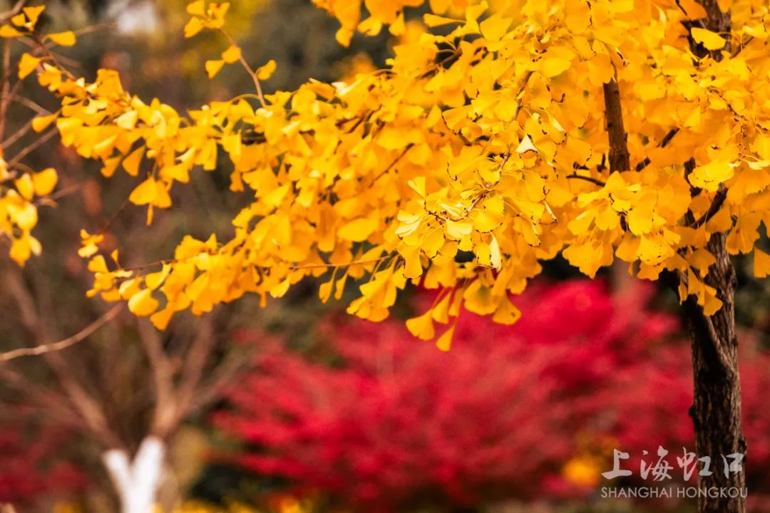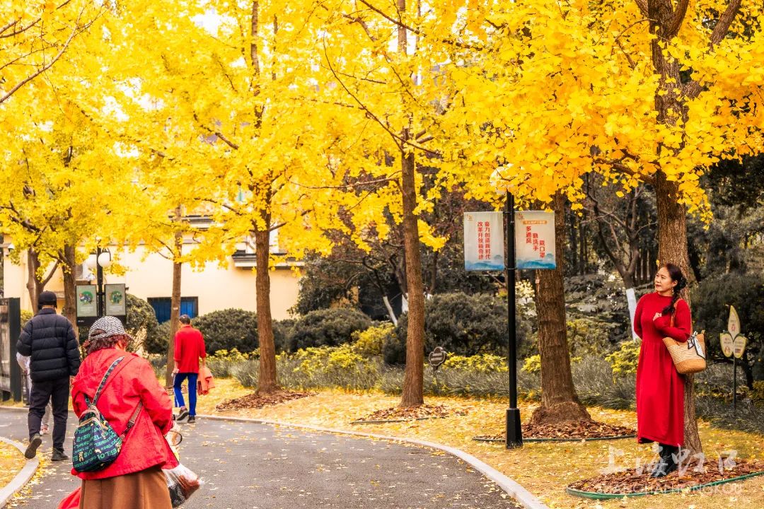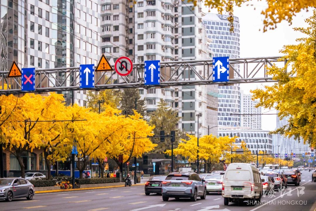 一夜寒霜降,满城银杏黄,随着气温持续走低,虹口区的银杏树悄然换上了金装。