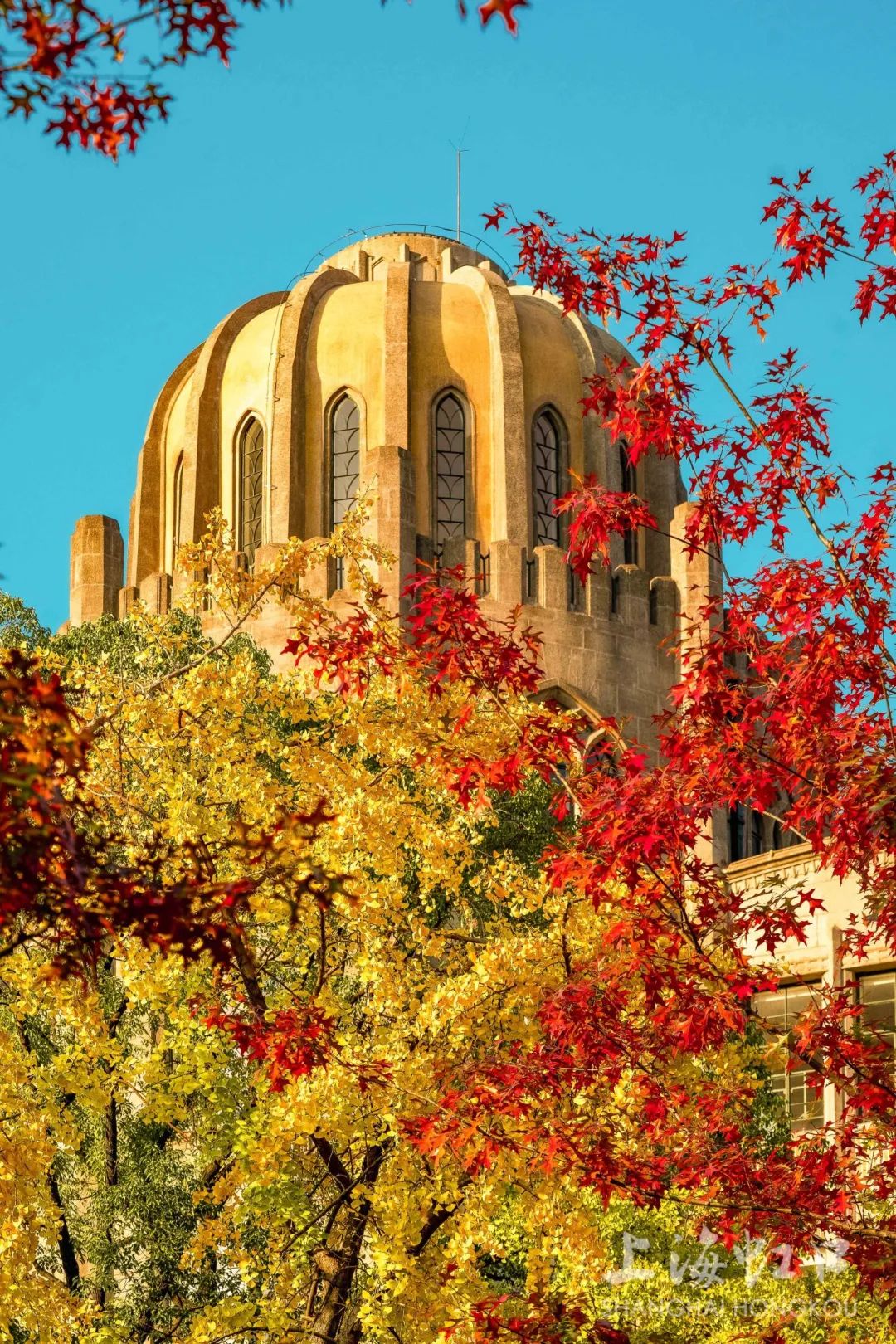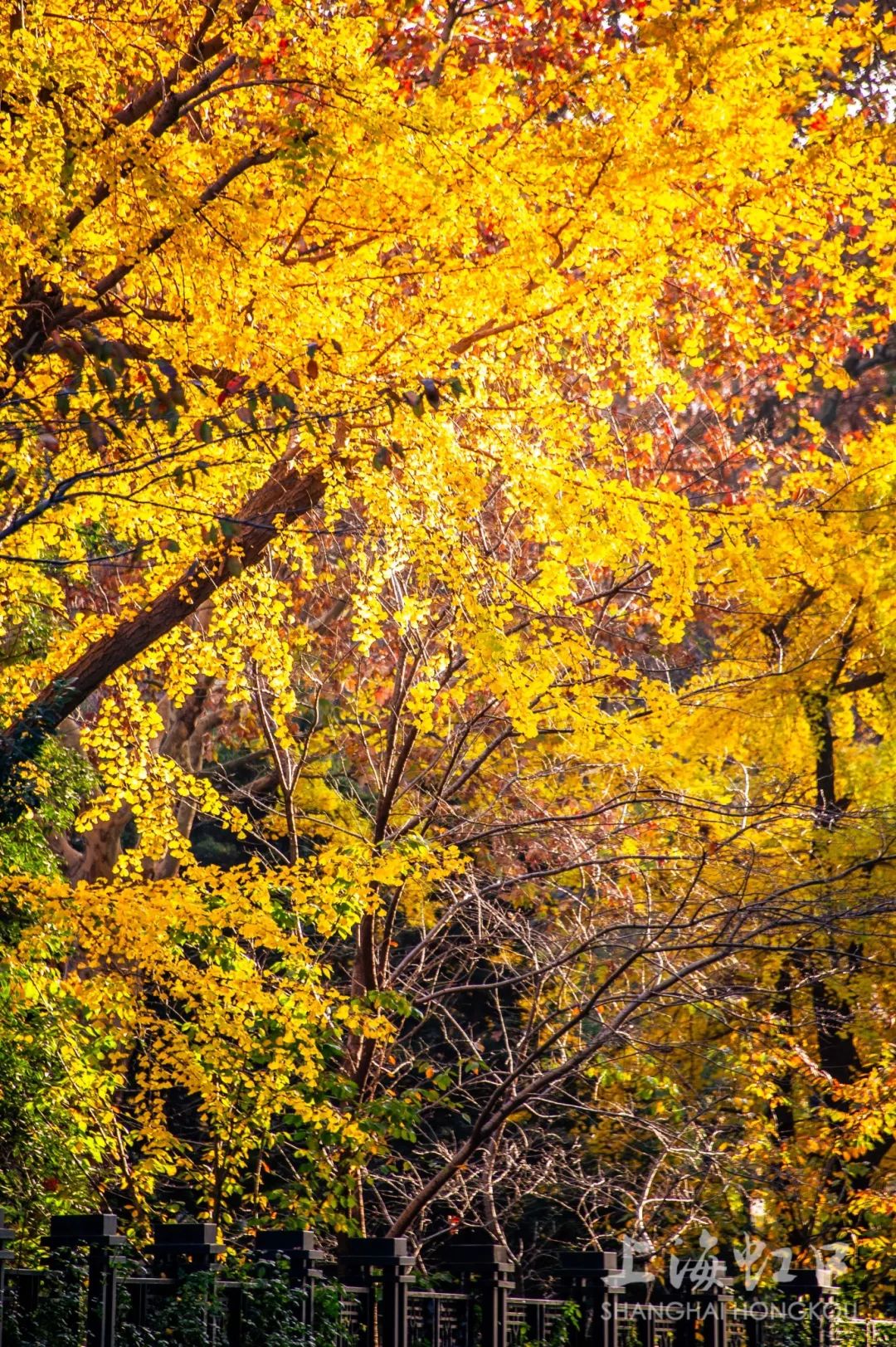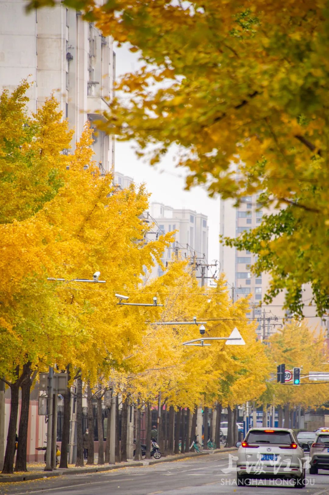 一夜寒霜降,满城银杏黄,随着气温持续走低,虹口区的银杏树悄然换上了金装。
