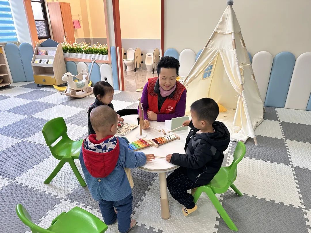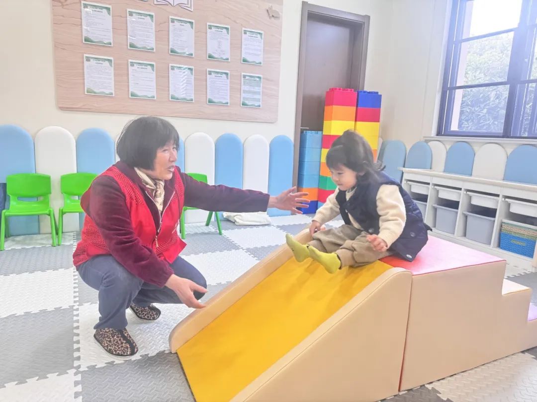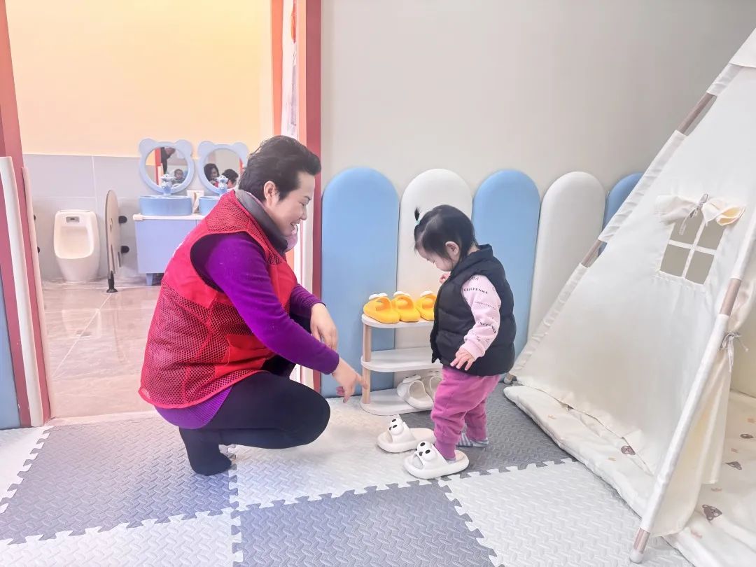 “宝宝屋”内配备的童趣活动材料经精挑细选,全方位满足婴幼儿生活照护与认知发展需求,尽显关爱。