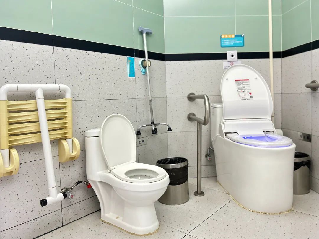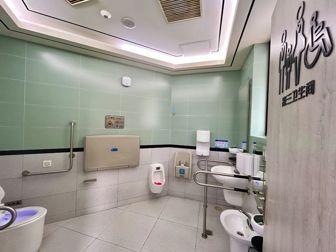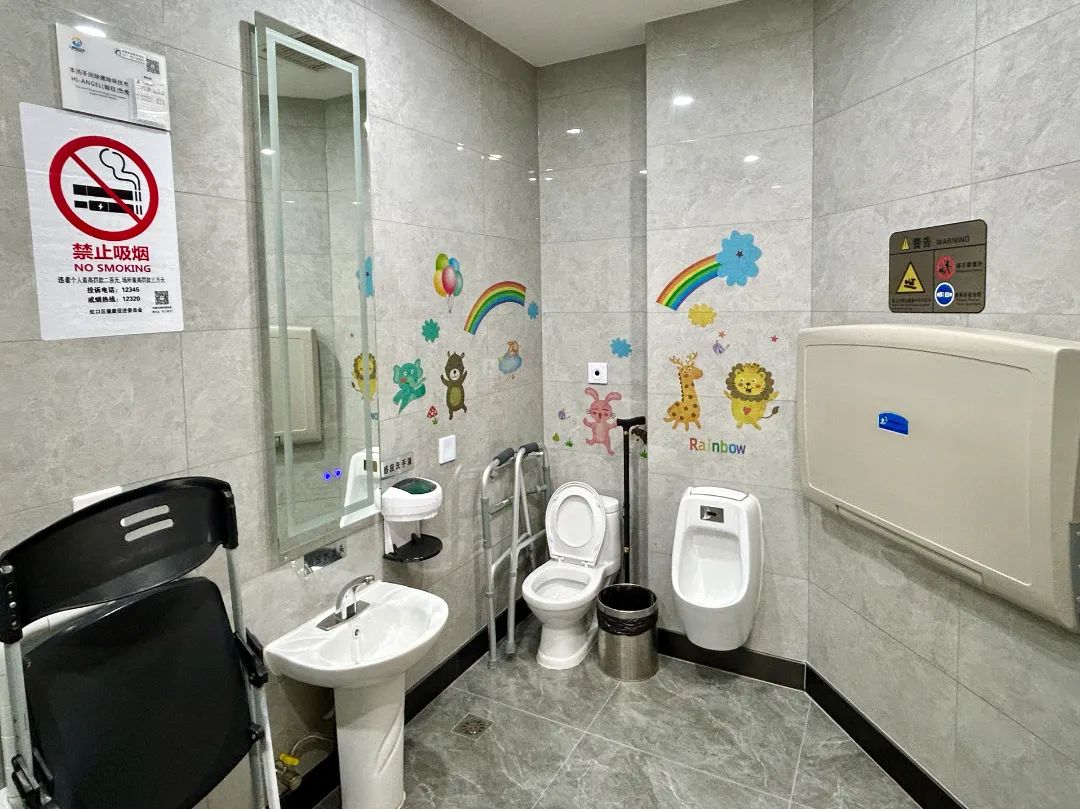 公厕内适老适幼化设施一应俱全,从带扶手的洗手池、坐便器,到婴儿护理台和幼儿座椅,再到儿童专用小便池和坐便器,每一处细节都透露出对特殊群体的关爱。