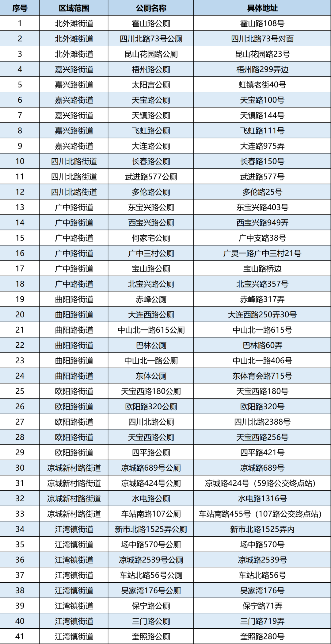 近年来,区绿化市容局在公厕提升改造方面下足功夫,不仅完善基础功能,更注重人文关怀。目前,在虹口区现有的68座环卫公厕中,已有41座完成适老适幼化改造(详见以下目录)。