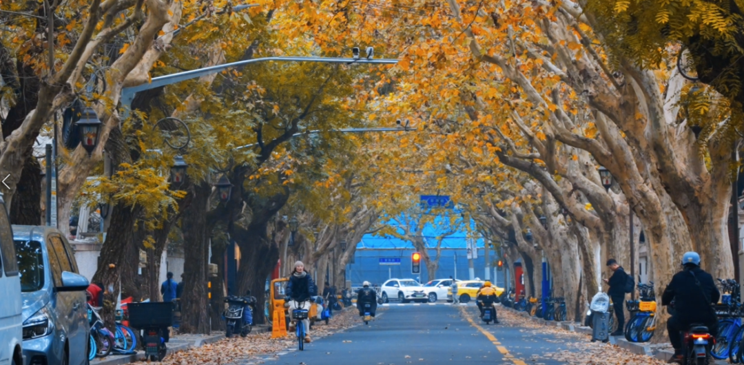 目前,静安区的巨鹿路(常熟路—富民路)和康定东路(石门二路—泰兴路)已开启“落叶不扫”模式,道路两旁以悬铃木为主的行道树翩然落叶,为街道铺上了一层厚厚的金色地毯。