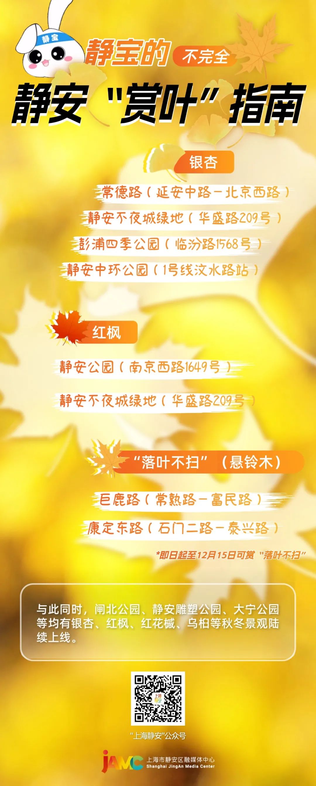 与此同时,闸北公园、静安雕塑公园、大宁公园等均有银杏、红枫、红花槭、乌桕等秋冬景观陆续上线。