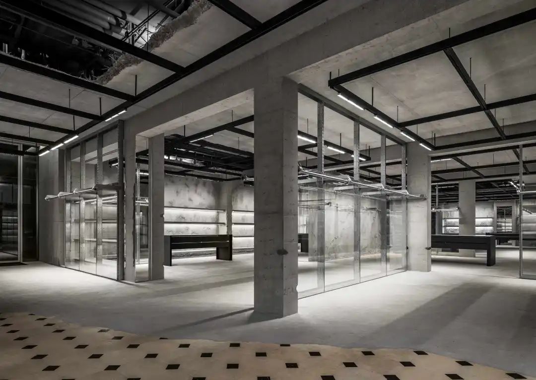 Balenciaga上海兴业太古汇旗舰店遵循品牌的原始建筑风格理念,呈现高档购物场所中罕见的工业风设计,创造别开生面的现代奢侈品零售体验。步入店内的宾客将置身一个充满临时感的空间,整个店面就仿佛一件艺术装置,能够与时装及宾客展开独特的互动。
