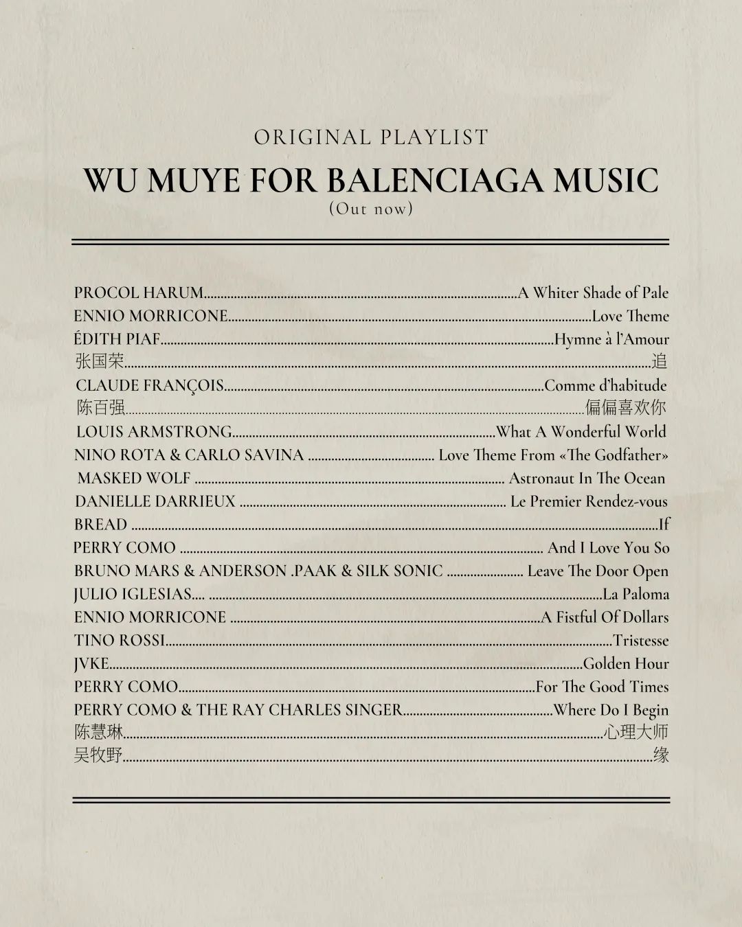 伴随新店开业,Balenciaga同时正式发布Balenciaga Music I吴牧野音乐特辑,展现这位享誉国际的钢琴艺术家融汇亚欧文化的非凡音乐素养。他被视为全球音乐界中最值得期待的钢琴家。本次专为Balenciaga Music挑选的曲目包括吴牧野的灵感之源与当下最爱,涉及古典、摇滚、爵士、嘻哈,还有一首专属原创作品。