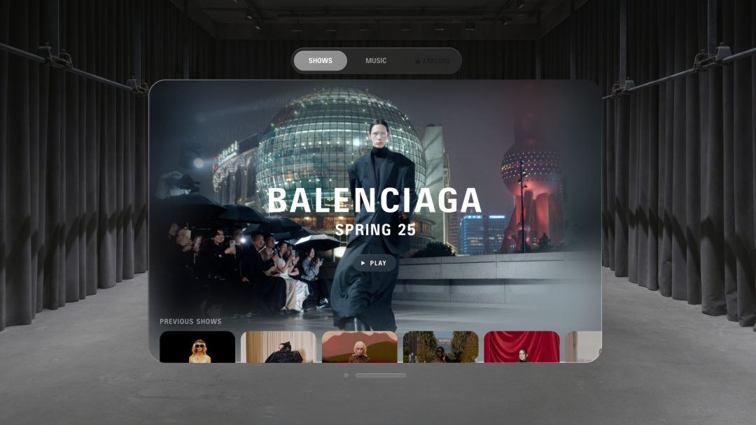 全新旗舰店内还配备一台内容定制版Apple Vision Pro头戴式设备,提供360°视觉虚拟体验,引导顾客探索Balenciaga | Apple Vision Pro应用程序的更新内容,包括更新升级版本的春季25系列、第53季高级定制与夏季25系列发布秀空间影像片段,以及巴黎乔治五世大街10号Balenciaga高级定制沙龙导览。