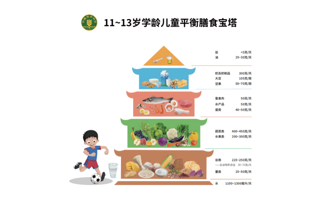 2—5岁,每天至少250克;6—9岁,每天至少350克;10岁或以上,每天至少400克。