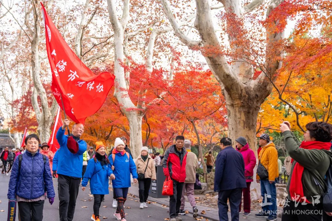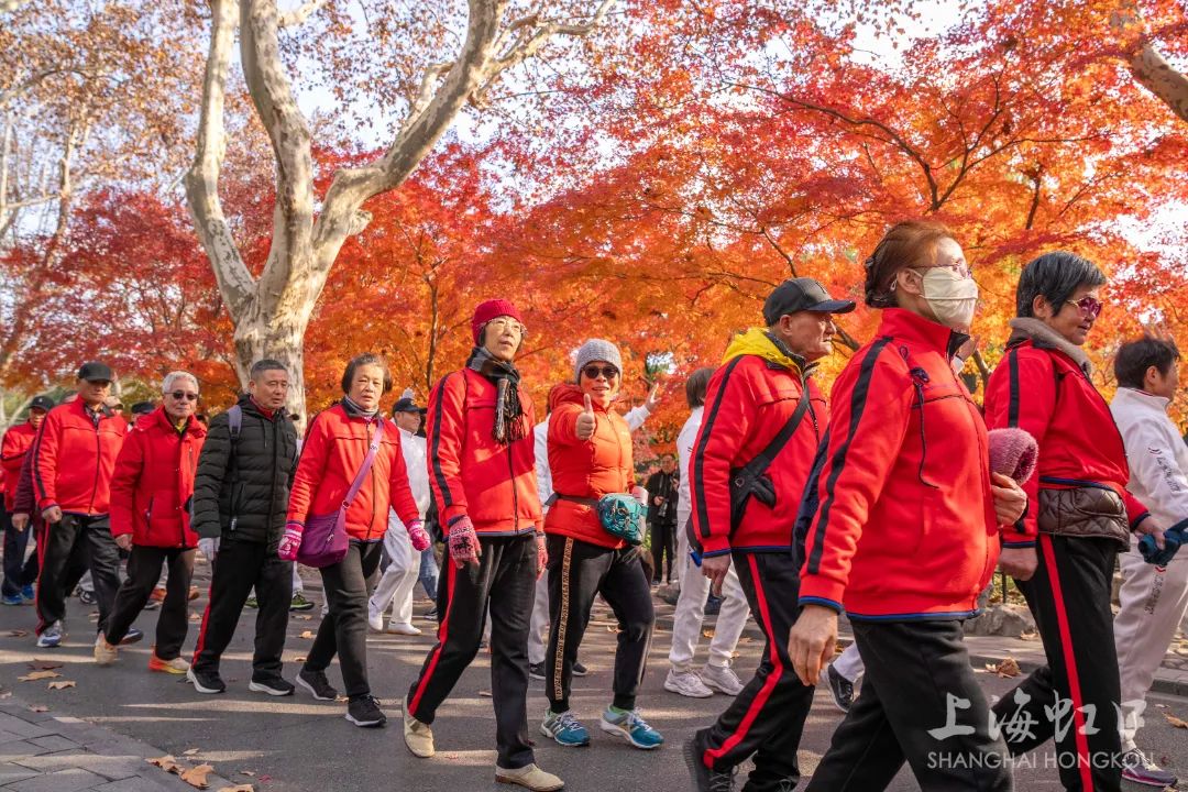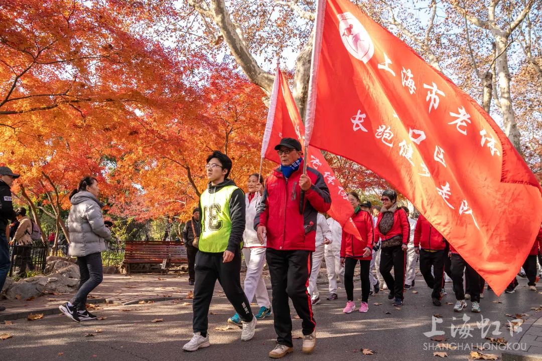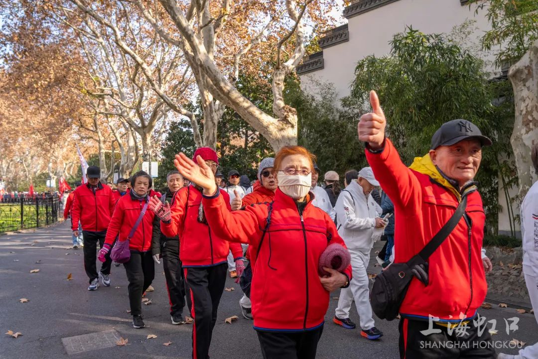 伴随着出发的号令,各代表队有序出发,身穿队服的健步爱好者们热情饱满、阔步向前,在红枫的点缀下,仿佛置身于优美画卷。本次健步走活动途经鲁迅纪念馆、朱屺瞻艺术馆等点位,全程约2公里。