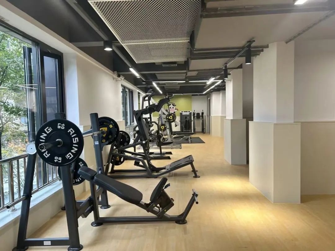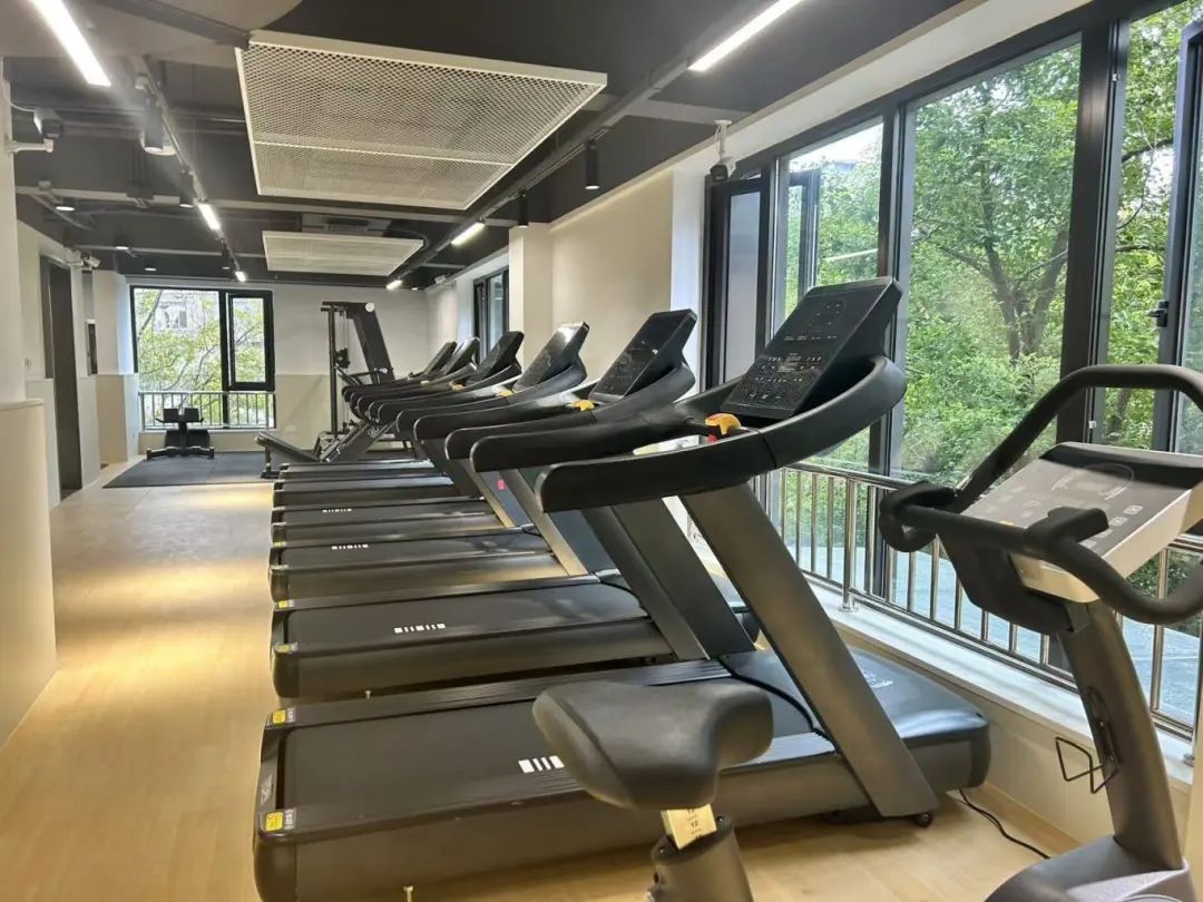 运动空间舒适,器械种类全面,会客厅二楼是市民健身驿站,占地247平,内有跑步机、动感单车、椭圆机等三十多件运动器械。市民健身驿站内部还进行了区域划分,包括有氧区、力量区、更衣休息区,居民可以根据自己的需求选择相应的区域。