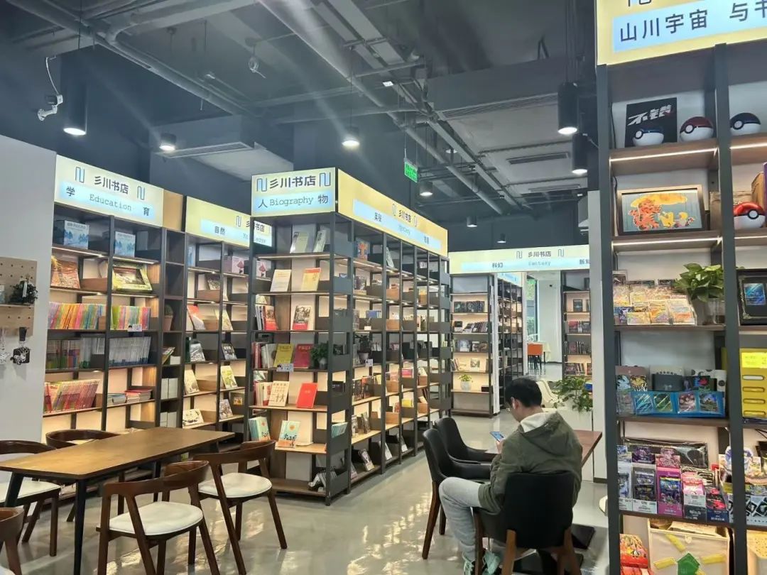 凉城社区会客厅的空间场景以“复合店”的形式打造,各自独立又相互连接。沿街区域是彡川书店,内部还设有咖啡馆。这里不仅可以买书,还提供书籍借阅服务,工作人员介绍:“凉城新村街道像这样的书店不多,书店和咖啡结合在一起的设计是为了吸引更多的年轻人,也希望为附近居民提供一个休闲的阅读空间。”