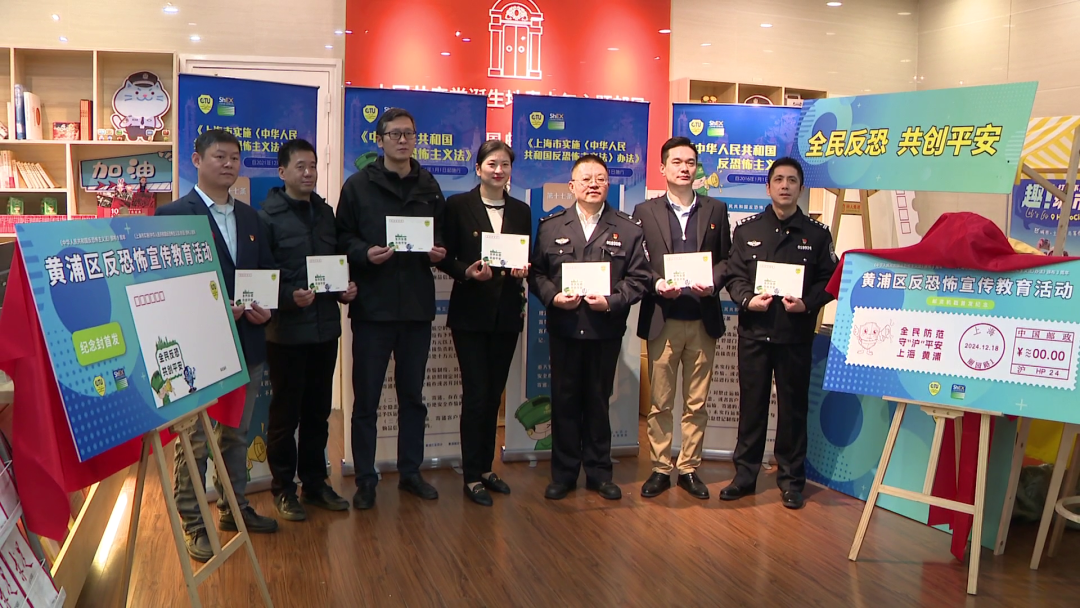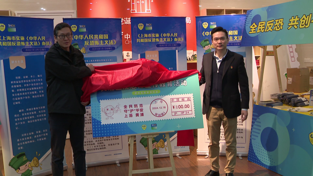 黄浦区反恐办、上海市黄浦邮政管理局、中国邮政集团有限公司上海市黄浦区分公司领导共同为发行的定制纪念封和《全民防范守“沪”平安》纪念邮资机戳进行揭幕。