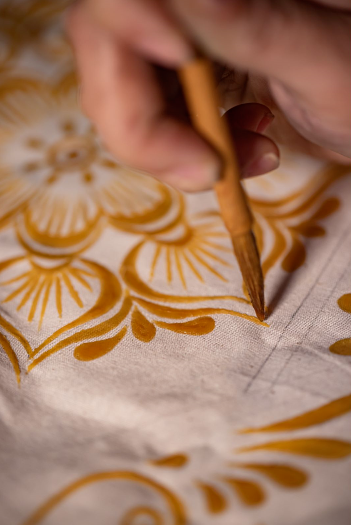 枫香染是使用加热后的枫香混合油脂在布料上绘制图案的手工技艺,是在传统蜡染基础上的演化,是国家级非物质文化遗产之一。枫香染由于图案极具感染力,色泽与青花瓷极为相似,被誉为“画在布上的青花瓷”。愿你能用枫香染的技艺绘制新年的“蓝图”,并在操作的过程中,感受中国传统手工技艺的魅力。