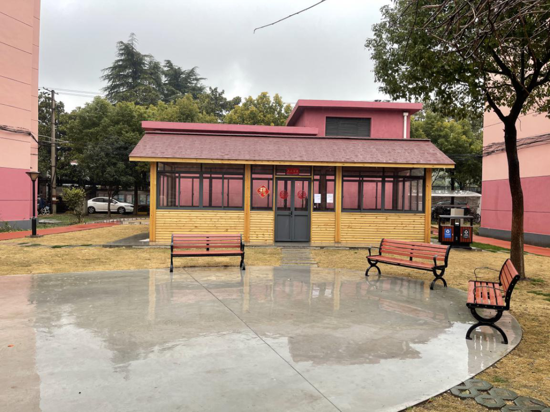 长廊所处的小广场也是社区文化活动的重要场所,旁边一座温馨的小木屋是居民休息或开展活动的重要场地。在“四百”大走访的过程中,小区了解到老年人普遍希望能有个可以唠嗑的地方,党总支听到了群众呼声后,马上召开联席会议,探讨如何因地制宜,在小区里打造一块小而美的社区空间,由此,这间小木屋就应运而生了。现在,小木屋已成了小区的“情报站”,邻居们常常聚在一起,聊着家长里短,分享生活的点滴。