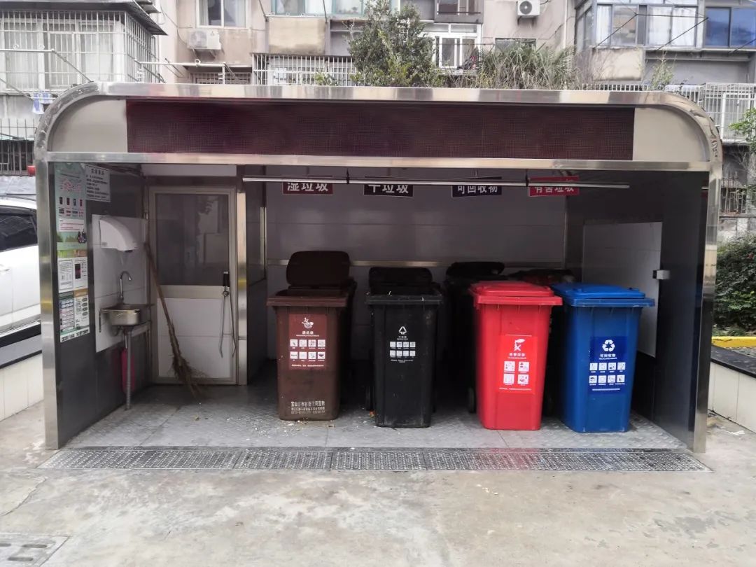 自《上海市生活垃圾管理条例》正式实施以来,宝林五村先后通过“一改两建”,打造出垃圾分类与资源回收体系,实现可持续发展。“一改”指的是改建生活垃圾箱房,将原有的砖混结构的垃圾箱房扩容,改成全不锈钢材料,增加洗手、烘手设备。