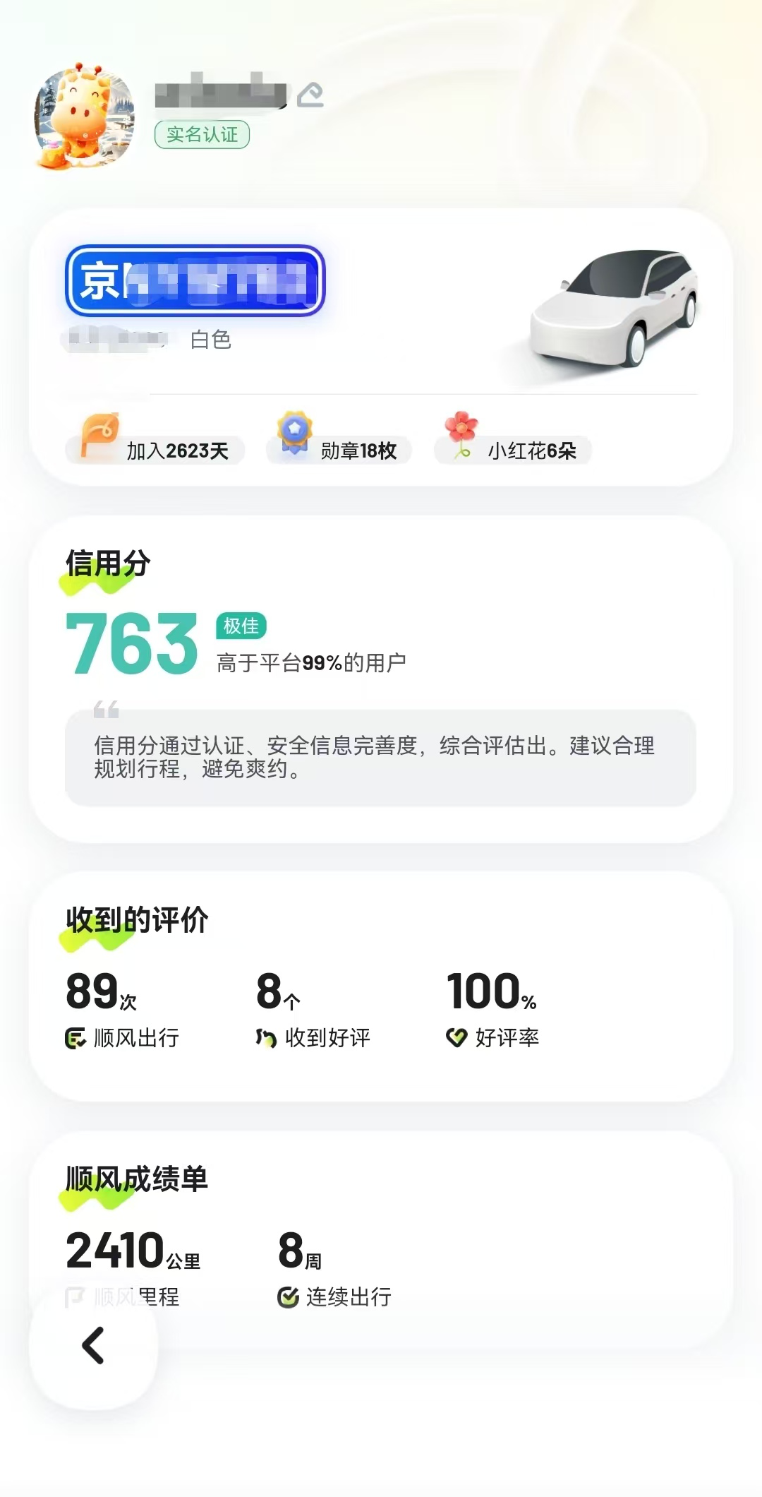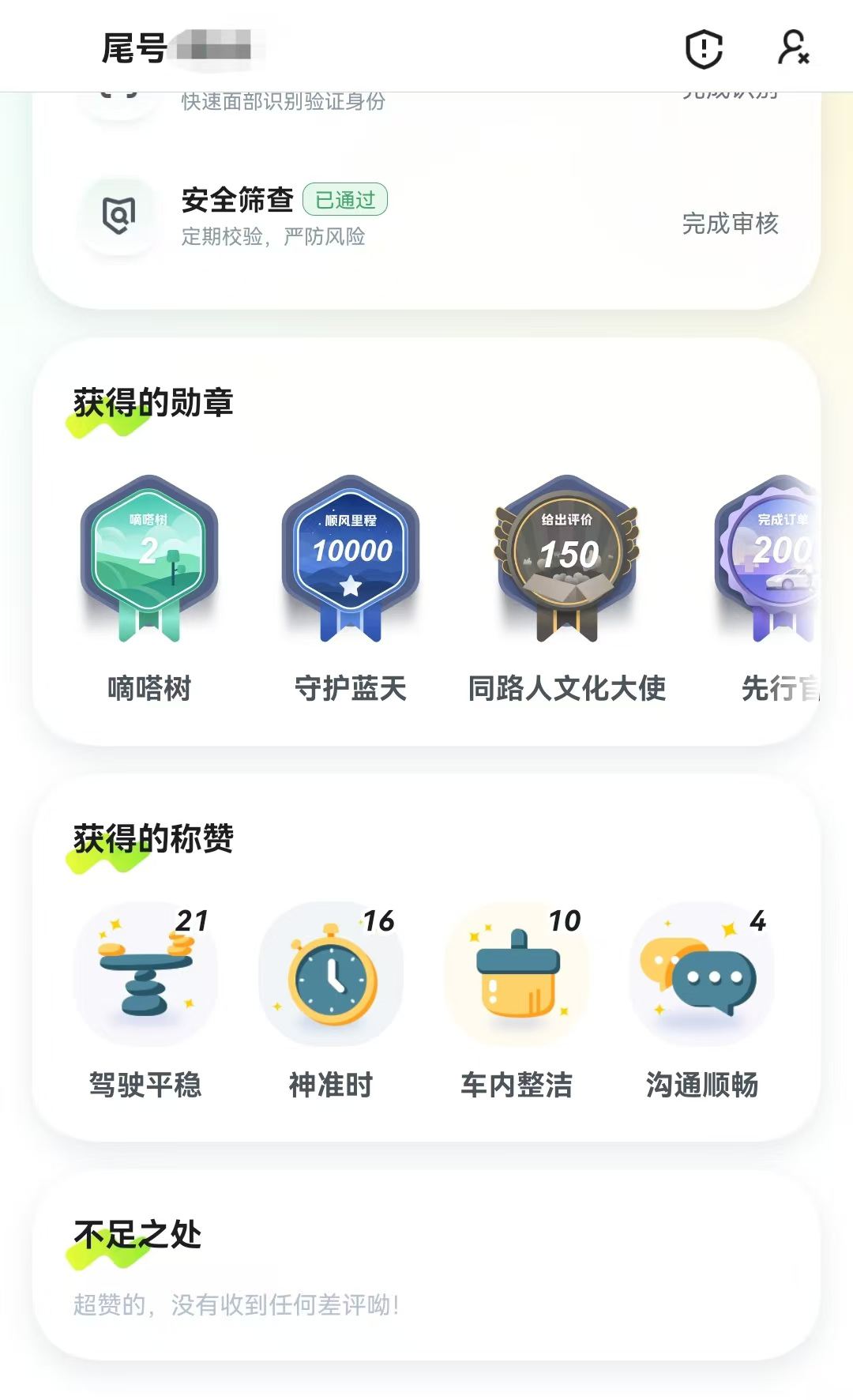 比如,在嘀嗒出行App内,每个用户的个人主页均会展示信用分、是否实名认证、好评率和具体好评差评信息,以及所获勋章详情和数量等。嘀嗒出行相关负责人表示,今后会考虑开放更多个人兴趣标签,进一步营造轻松愉悦的顺风体验。