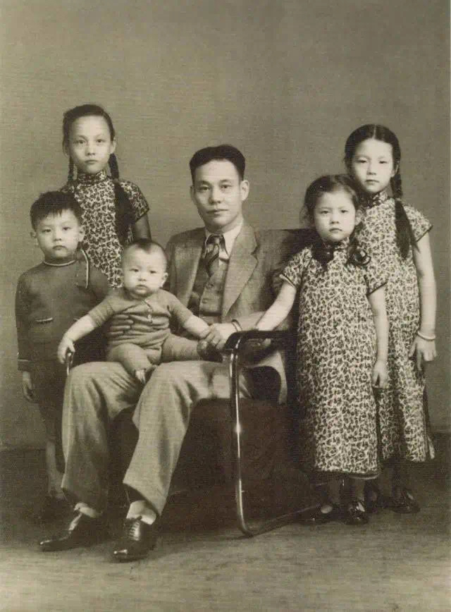 家庭合影,小小周英华坐在周信芳腿上