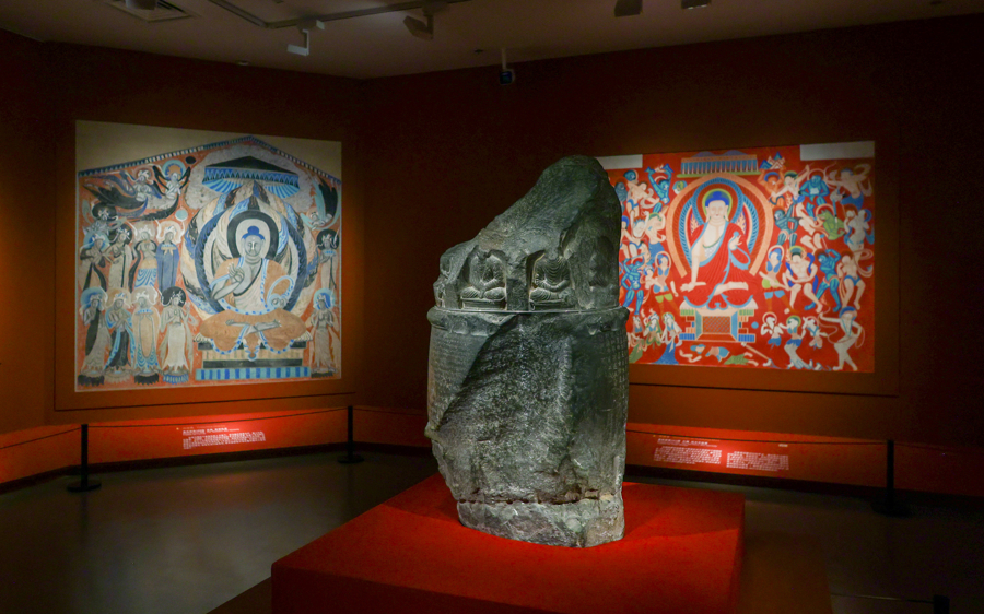敦煌研究院馆藏文物中体积最大的《北凉石塔》、见证敦煌文化包容互鉴的莫高窟六字真言碑、证实记录莫高窟开凿时间的《圣历碑》、入选国家宝藏的《归义军衙府酒破历》、禁止出国(境)展览文物北魏刺绣佛像供养人等,还有国家文物保护项目《藏经洞》数字回归成果最大规模全球首展……可以说,这是有史以来敦煌文化艺术展品在上海最全面、最多样的展出。