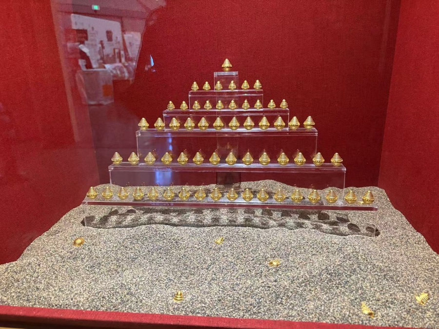 记者在现场看到,展览与老凤祥合作的价值5200元的吊坠“金墩墩”颇受欢迎,“金墩墩”上缀六字真言,饰以54颗莲珠,18瓣莲纹,敦厚坚韧,有“福佑随行”之意。最后一个“金墩墩”被一位男士买走,他说要回家送给刚刚出生的小宝宝。