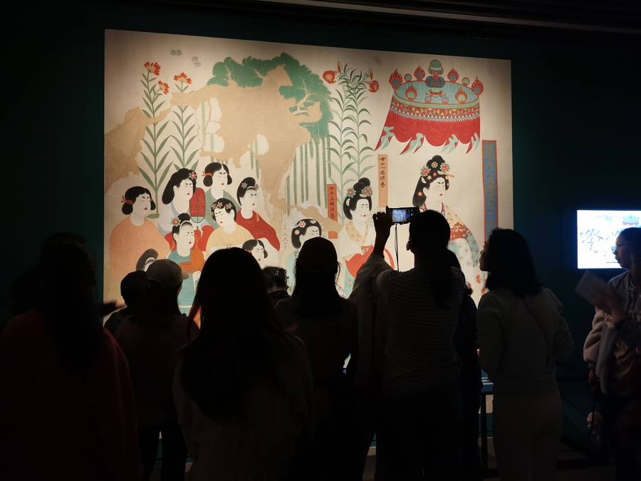 这个秋冬,“在上海,看敦煌”成了上海文旅的热词之一。从莫高窟的壁画到彩塑,从古老的佛经到绚烂的艺术,莫高窟经典洞窟复制窟,在距离敦煌3000公里之外的上海,感受着敦煌独特的文化魅力……据主办方介绍,作为第35届上海旅游节首次导入的重磅文博艺术项目,自2024年9月20日开幕以来,“何以敦煌”敦煌艺术大展共计接待中外游客30万人次,文创收入突破千万元。