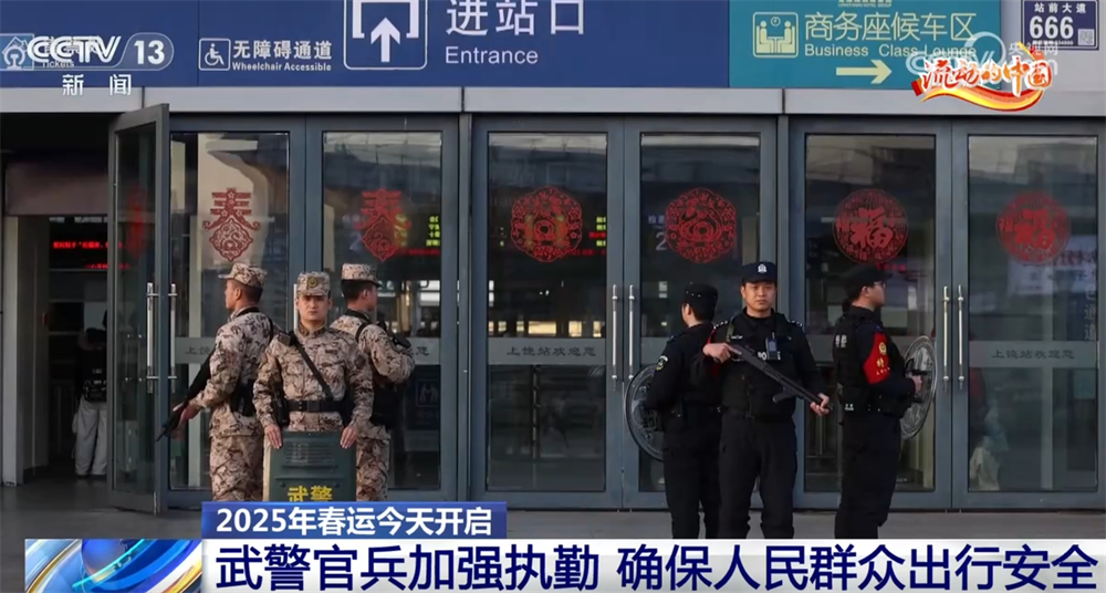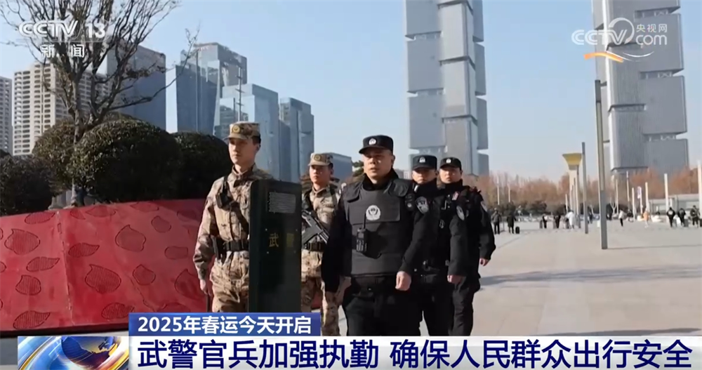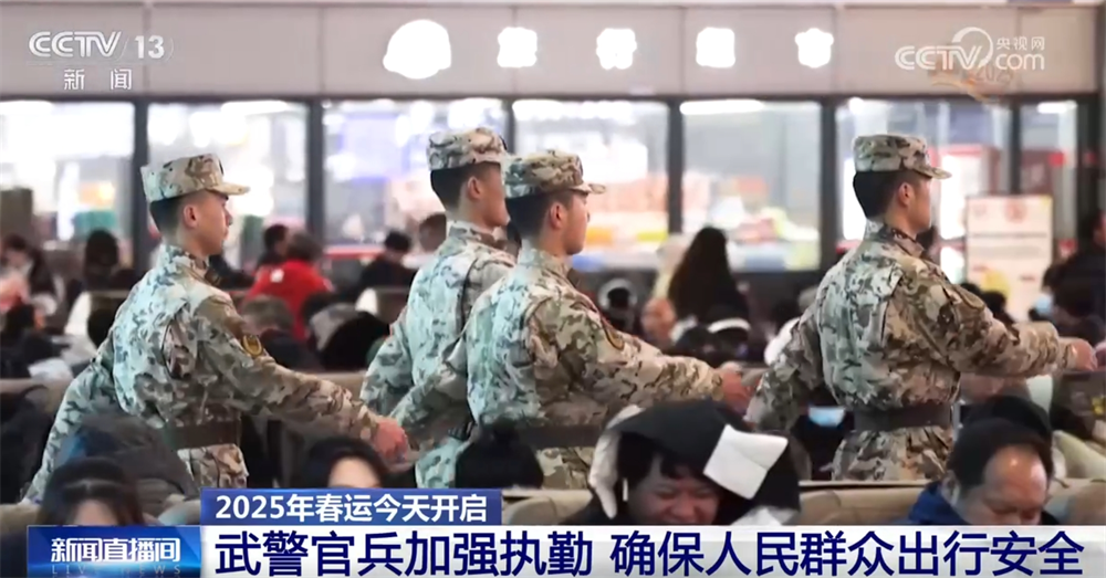 央视网消息:2025年春运从1月14日开始,到2月22日结束,共40天,返乡回家过年的旅客与日俱增。作为平安春运的守护者,武警官兵们坚守执勤一线,肩负起了春运安全的重任。春运期间,为确保旅客安全顺利返乡,武警部队灵活调整兵力部署,加强与机场、高铁站等重要交通枢纽信息数据共享和研判,确保广大人民群众的出行安全。