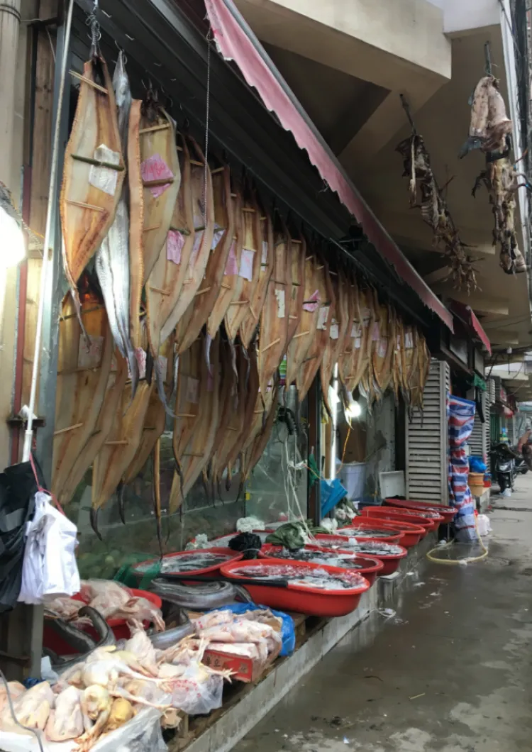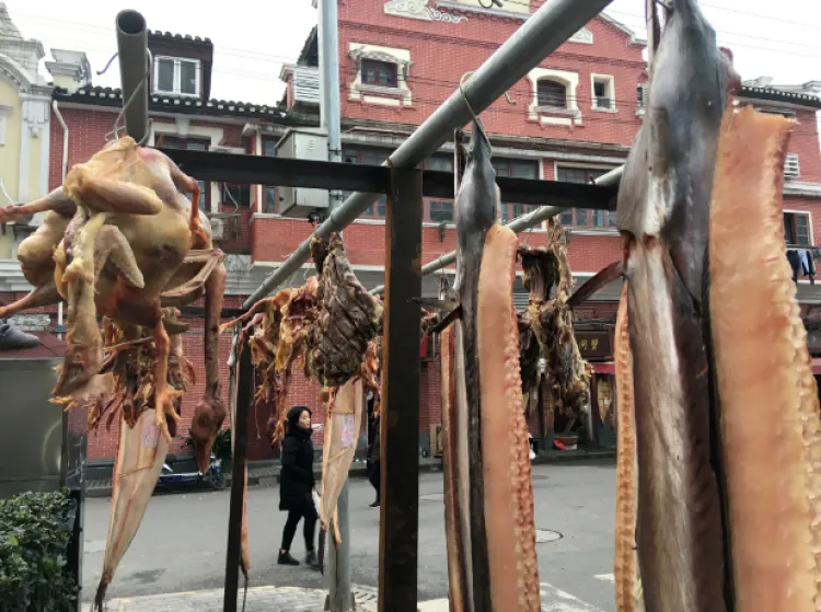 街头巷尾的鳗鲞、咸鸡、腊肉,营造着浓浓的春节气氛