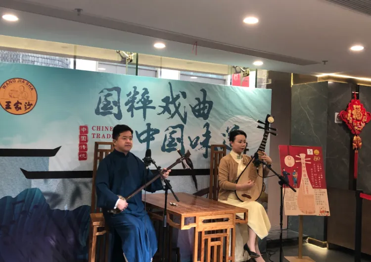 上海评弹团的评弹演员来到现场献艺