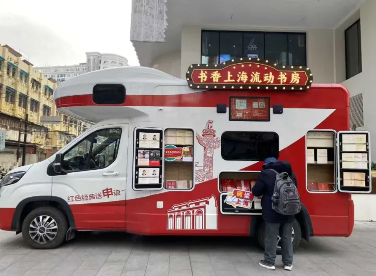 一辆“书香上海流动书房”停在上海书城福州路店外近日,由两辆崭新的红色房车组成的“书香上海流动书房”分别亮相上海书城福州路店外广场及浦东三林亿丰时代广场,吸引众多党员市民前来品读红色经典。据悉,2025新年伊始,由红色房车组成的“书香上海流动书房”车队已先后亮相中共一大会址(黄陂南路段)、真如街道复悦荟大草坪及三林世博家园市民中心等点位,并将前往程十发美术馆、嘉定新城远香湖文化驿站、杨浦滨江,为建设“书香上海”贡献一份力量。