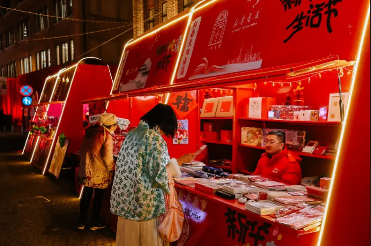新年市集汇聚了众多出版社和书店的精品图书1月9日至2月16日期间,新华悦读生活节首次入驻外滩源新年市集,以蛇年新春传统文化为主题将为市民及读者们带来精彩的文化市集和50场次的精彩活动。展区的设计充满了年轻化和时尚感,色彩鲜艳、视觉冲击力强,吸引了不少年轻人的目光。在这里,你可以看到各种与蛇年相关的文化产品,如蛇纹图案的文具、蛇形书签、蛇年纪念册等,每一件产品都蕴含着深厚的文化内涵和创意。除了文化产品外,新华悦读生活节还为大家提供了人气美食、缤纷特饮和文创集合,涵盖传统非遗内容和现代网红小吃、文创,吸引市民和游客在这里驻足,享受着文化碰撞带来的愉悦和满足。